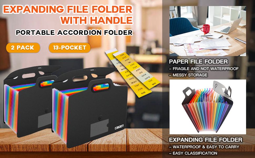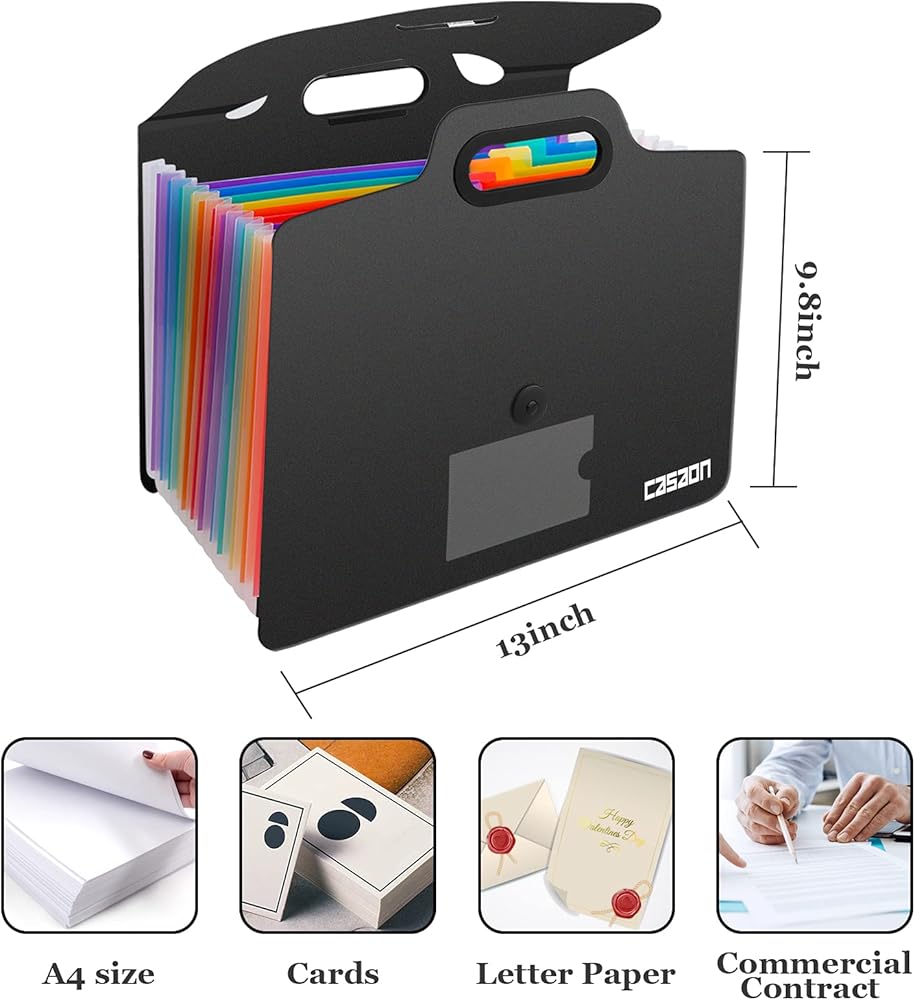 - 2 عبوة من 13 جيبًا لمنظم ملفات الأكورديان يناسب جيدًا جميع أنواع الورق بحجم A4/Letter، مناسب لتخزين المستندات في الحياة اليومية