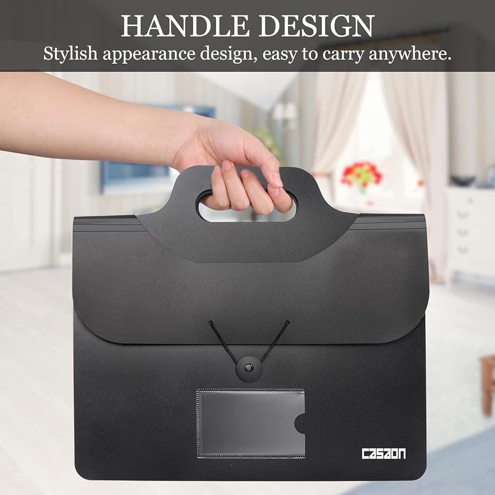 2 حزمة من 13 جيبًا لمجلد ملفات قابل للتوسيع مع مقبض، منظم ملفات أكورديان محمول بحجم حرف A4، مجلد مستندات بمقبض للمدرسة والمكتب والمنزل - أسود