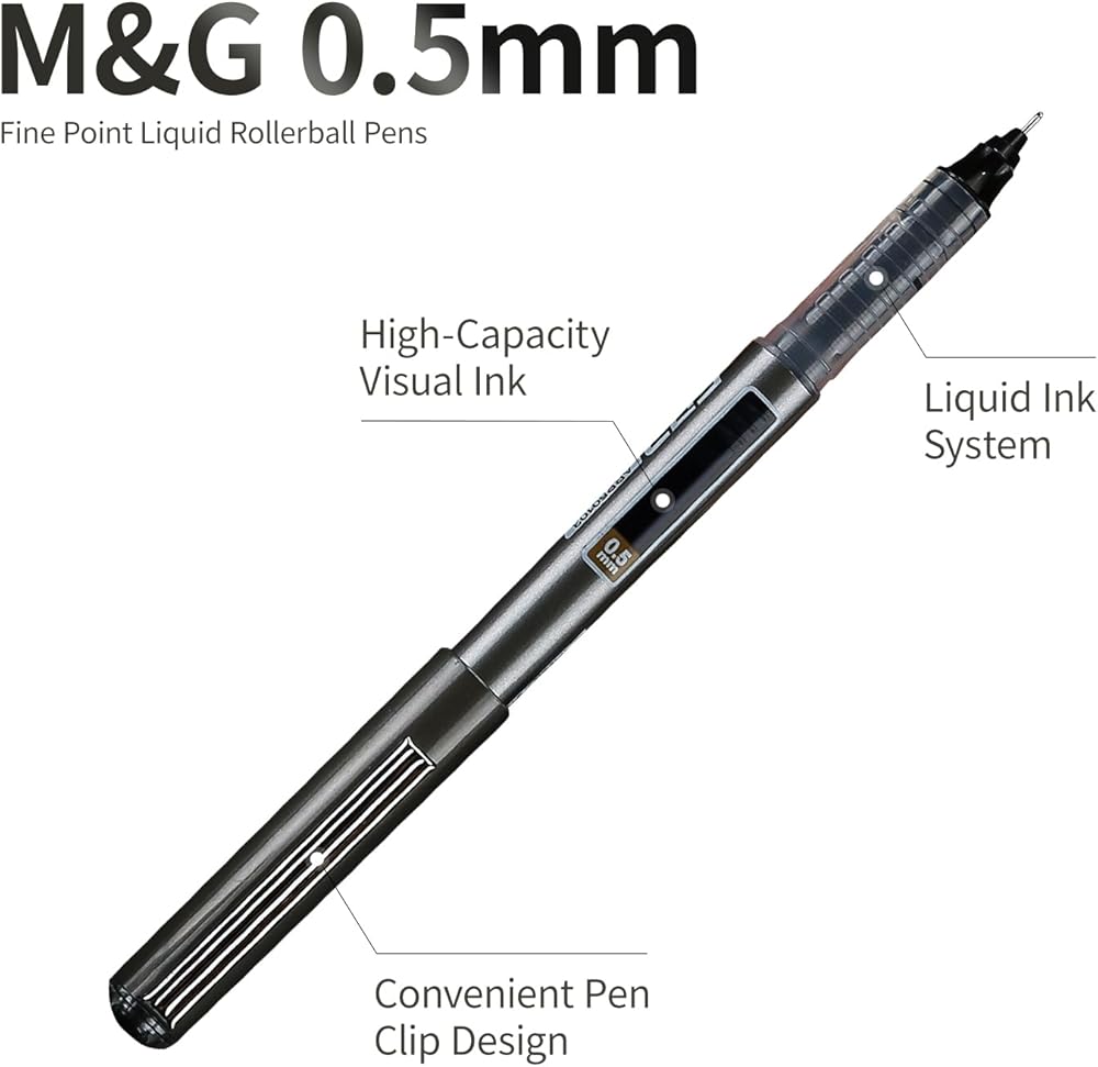 حزمة M&G القيمة: تتضمن عبوتنا 10 قطع من قلم الكرة الدوارة السائل بارتفاع 5.51 بوصة بحبر أسود، مناسب جدًا لكتابة الواجبات المنزلية اليومية، سريع وطلاقة، مما يوفر وقت الدراسة.
