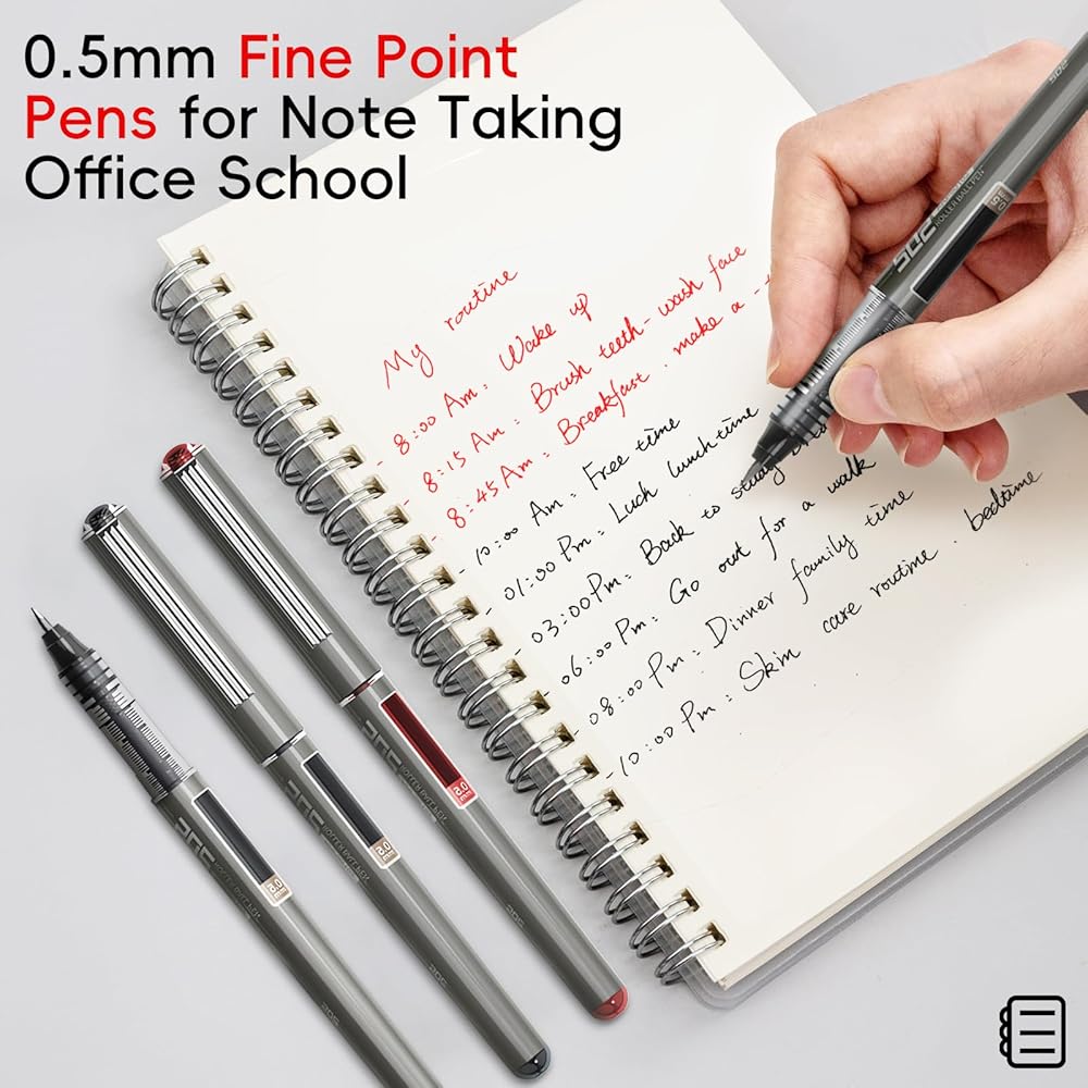 نقطة 0.5 مم: يضمن الطرف الدقيق كتابة دقيقة وواضحة دون تلطيخ أو نزيف من خلال الورق.