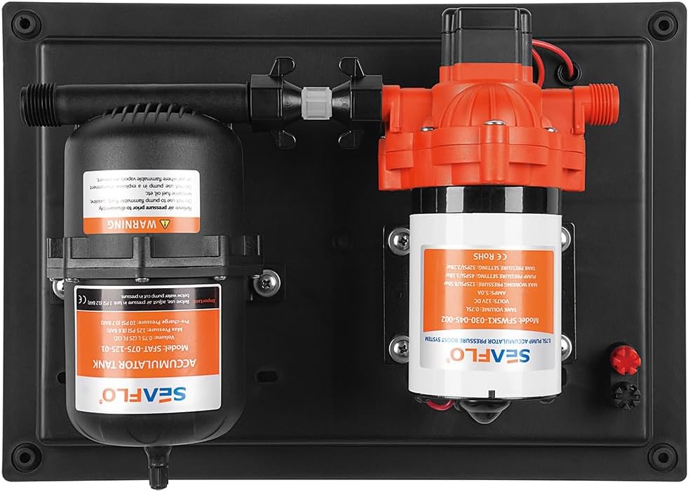 Seaflo 33-Series Pump and Accumulator Sank System- 12V DC ، 3.0 GPM ، 45 PSI ، 0.2 GALLON TANK- يقلل من ركوب الدراجات في تطبيقات البحرية والقوارب و RV و OFF-GRID- ضمان لمدة 4 سنوات! مصدقة CE & ROHS