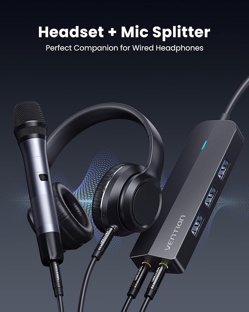Versatile connectivity: VENTION USB 3.0 Hub 3-Port USB Sound Card is a 2-in-1 external stereo audio adapter that allows you to connect multiple USB devices and enjoy high-quality audio through the 3.5mm jack.
