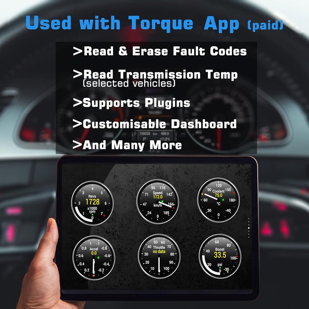 • مطلوب تطبيق طرف ثالث (قد يتطلب البعض شراء منفصل). تطبيقات مختلفة متاحة! يدعم Obd Fusion، وماسح السيارة ELM Obd2، وFourStroke، وInforcar، وما إلى ذلك لنظام iOS وTorque Lite/Pro، وماسح ضوئي للسيارة لنظام Android.