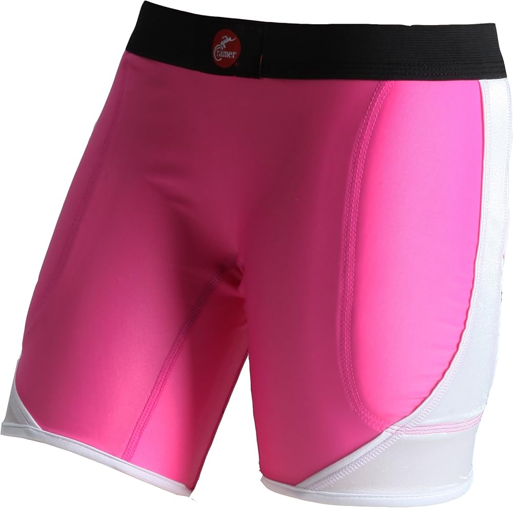 Since 1918, coaches and sports medicine professionals have relied on Cramer to maximize the performance of their athletes. The brand helps players of all ages and skill levels, and its legacy of product specific knowledge has made it a cornerstone of the industry. Drawing on the experience of nearly a century devoted to product innovation, Cramer meticulously crafted a line of protective apparel that enables competitors at every level to go harder and play safer. Research and development specialists took ideas and materials out of the workshop to test in real game-time conditions, and the items offered today survived intense scrutiny by those actual athletes in the field. Now, the garments embody the highest commitment to safety, style, and comfort so that the only focus is the game, not the gear. From optimally compressive fabrics to dynamic pad systems, Cramer apparel is designed to perform, proven to protect and built to last. Cramer softball sliding shorts for women featuring a low-rise design and 1/8-inch foam padding on the hips and outer thighs. Foam offers the best cushioning at impact, while two-ply polyester fabric padding offers a more tapered feminine appearance. Style also used as an active wear outer garment for pre- and post-game activities. Fabricated of 85% Polyester/15% Spandex (85% Nylon/15% Spandex for pink/black and pink/white versions) with 1.5-inch spandex elastomer waistband, 5-inch inseam and inner thinly padded liner. Anti-microbial and moisture-wicking. Sold in both youth and adult sizes. Available in black/pink, black/lime green, black/gray, black/optic yellow, pink/black, pink/white, white and navy gray.