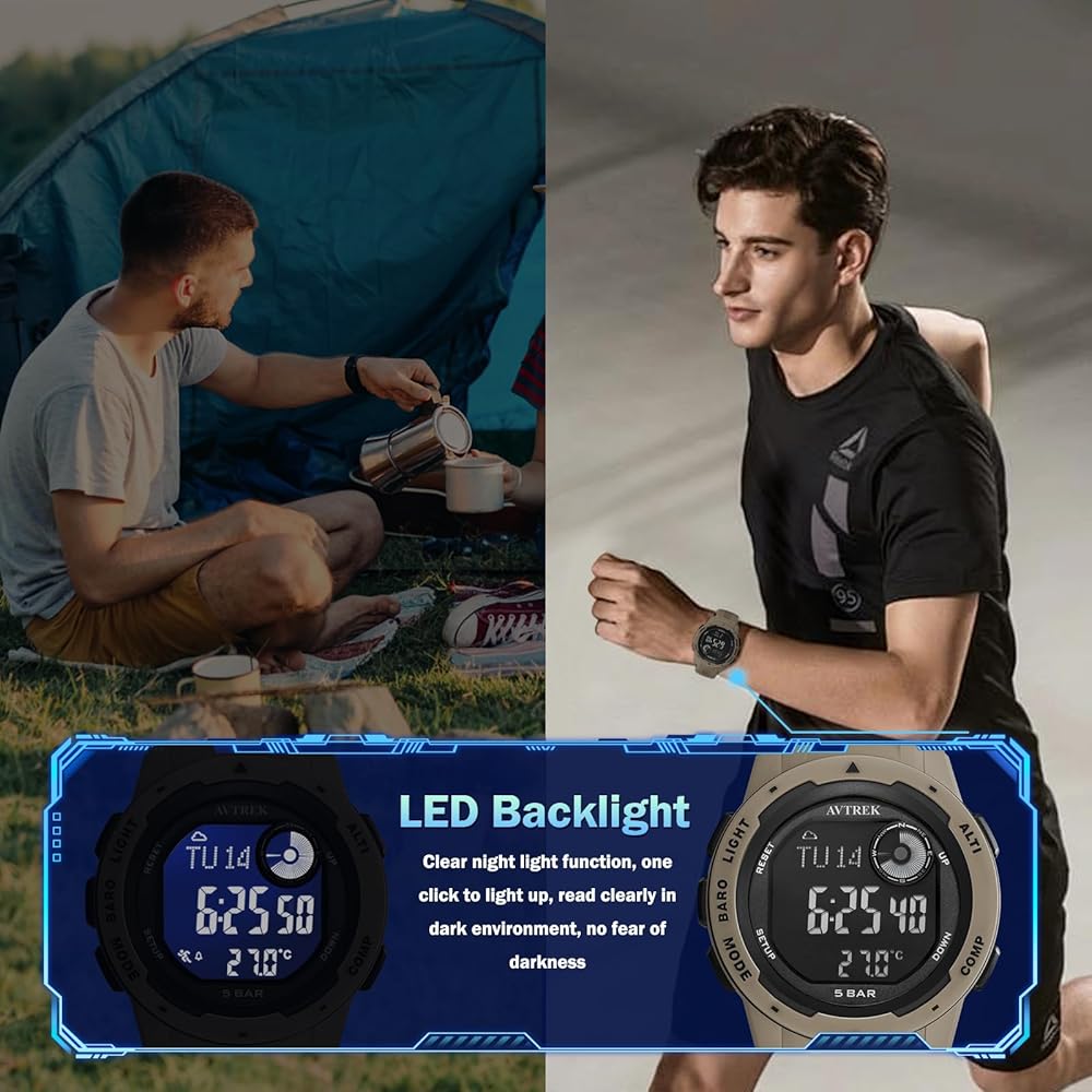 بوصلة رقمية: إنها ساعة رياضية أنيقة للمشي لمسافات طويلة أو الأنشطة الخارجية. سنقوم بمعايرة البوصلة أثناء الإنتاج. لكن من الأفضل معايرته تلقائيًا أو يدويًا قبل استخدامه. (راجع دليل المعايرة)