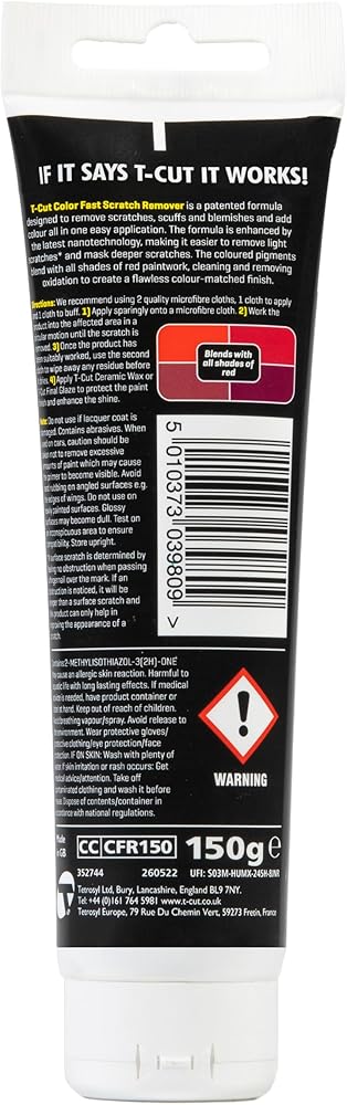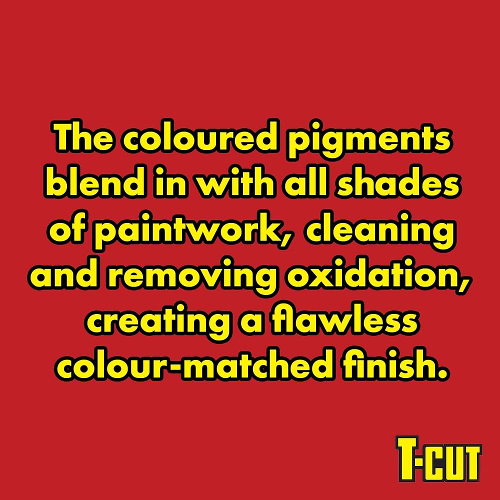- مزيل الخدوش T-Cut Colourfast (تركيبة في انتظار الحصول على براءة اختراع) يزيل الخدوش والكشوط والعيوب ويضيف اللون في تطبيق واحد سهل.