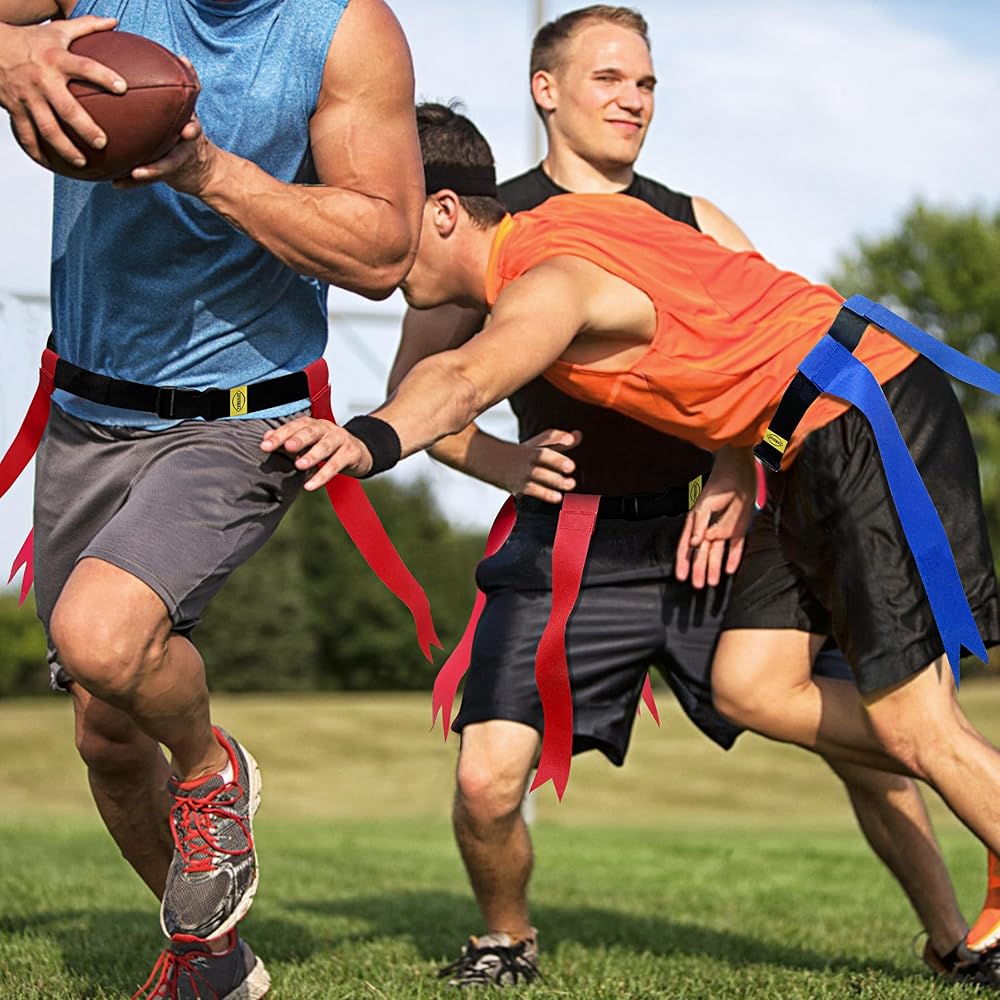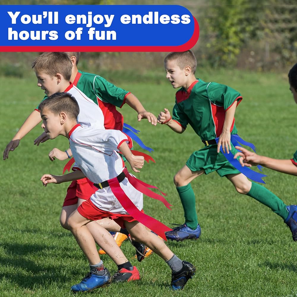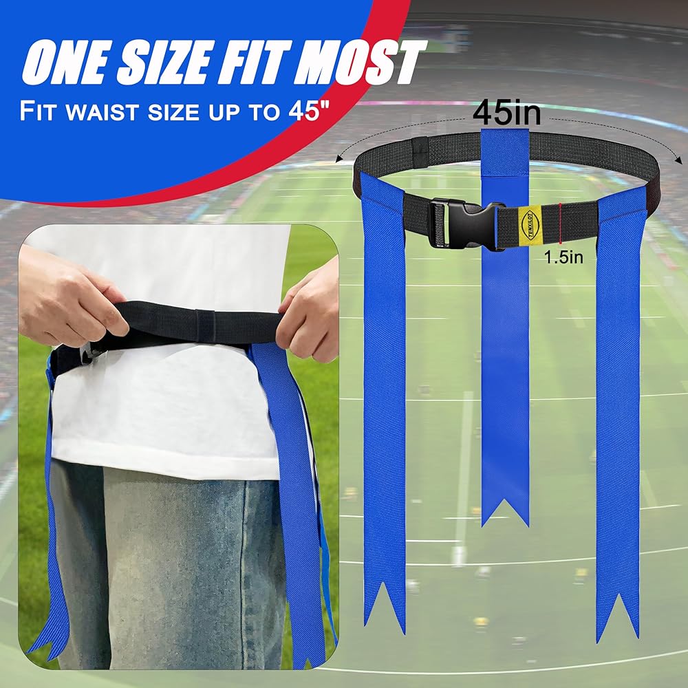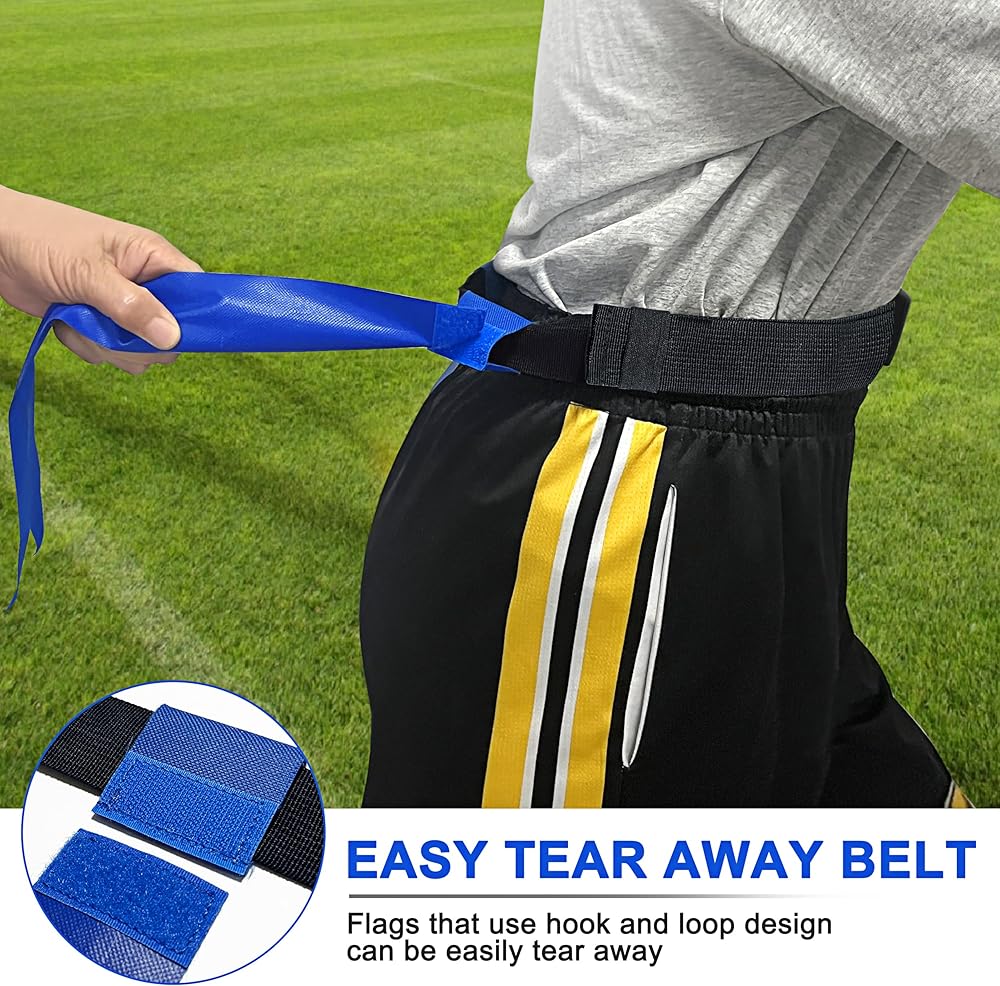 • مادة النايلون المتينة تمكن أحزمة كرة القدم ذات العلم من أن تدوم لفترة أطول دون أن تتمزق أو تنكسر، ويمكنها تحمل العديد من الألعاب المكثفة. الأعلام مرفقة بخطاف وحلقة، وحزام سهل التمزيق، وحافظة حلقة حزام مرنة على الحزام لتأمين الأشرطة الفضفاضة، لذلك لن يرفرف الحزام الزائد حولها.