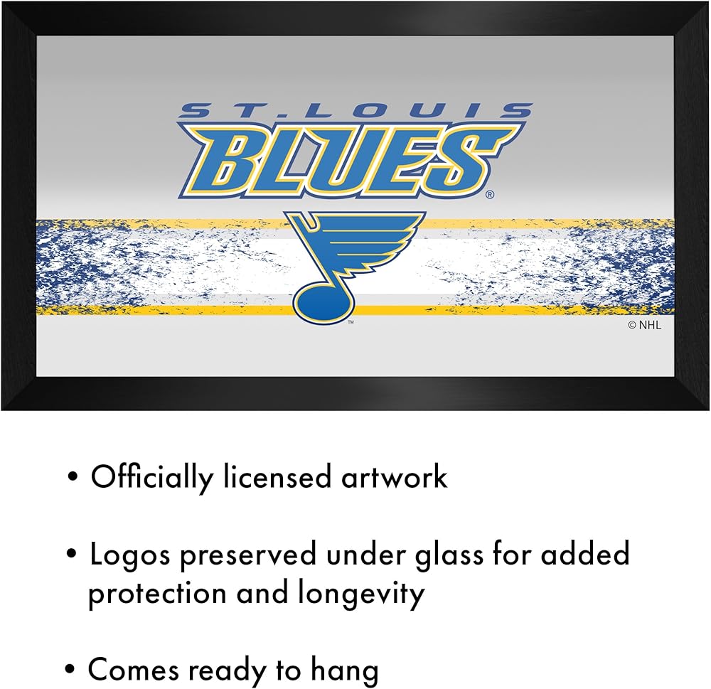 OFFICIALLY LICENSED MIRROR - This framed mirror features the officially licensed St. Louis Blues logo. The authentic artwork is preserved under mirrored glass for a professional look that will last for years to come.