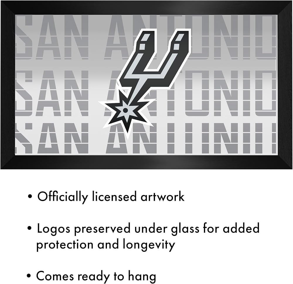 OFFICIALLY LICENSED MIRROR - This framed mirror features the officially licensed San Antonio Spurs logo. The authentic artwork is preserved under mirrored glass for a professional look that will last for years to come.