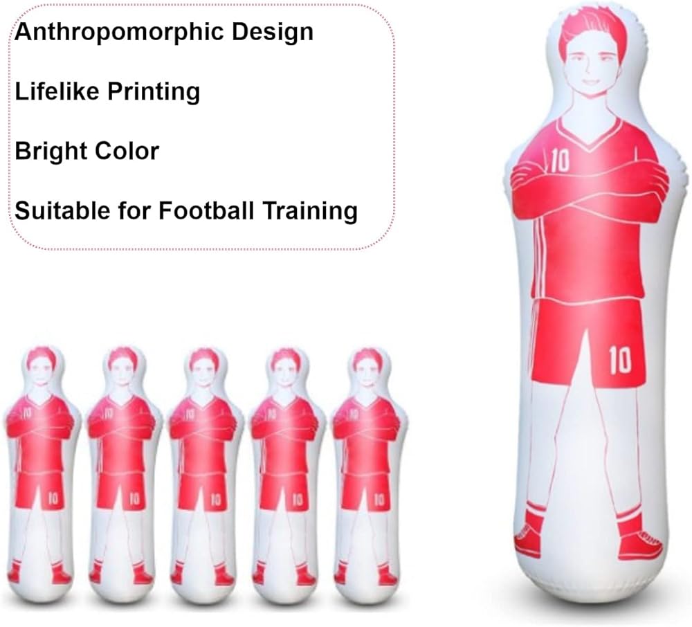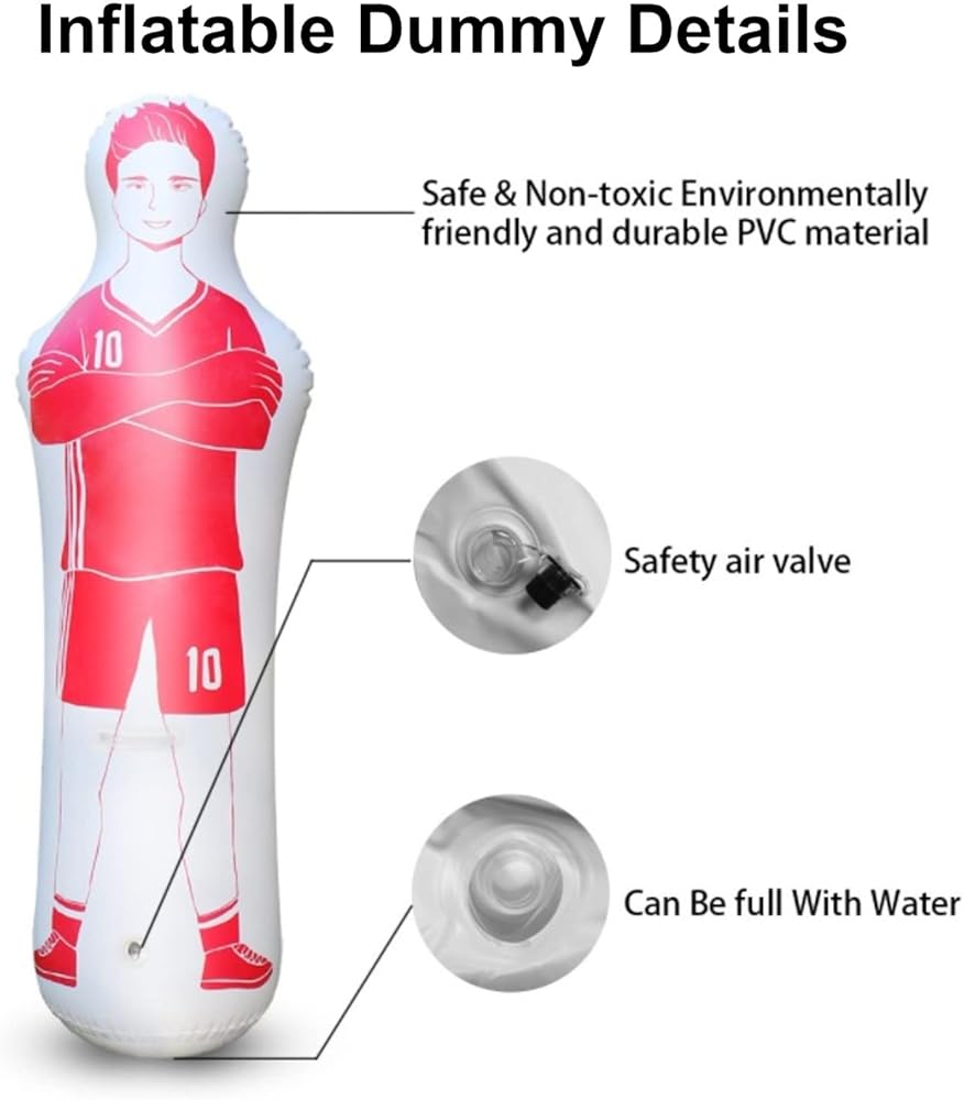 دمية متعددة الأغراض: لا يمكن استخدام الدمية القابلة للنفخ فقط كتدريب لكرة القدم للشباب لتحسين مهارات اللاعب، ولكن يمكن استخدامها أيضًا كعارضة ملاكمة أو كأداة للياقة البدنية لممارسة التمارين.