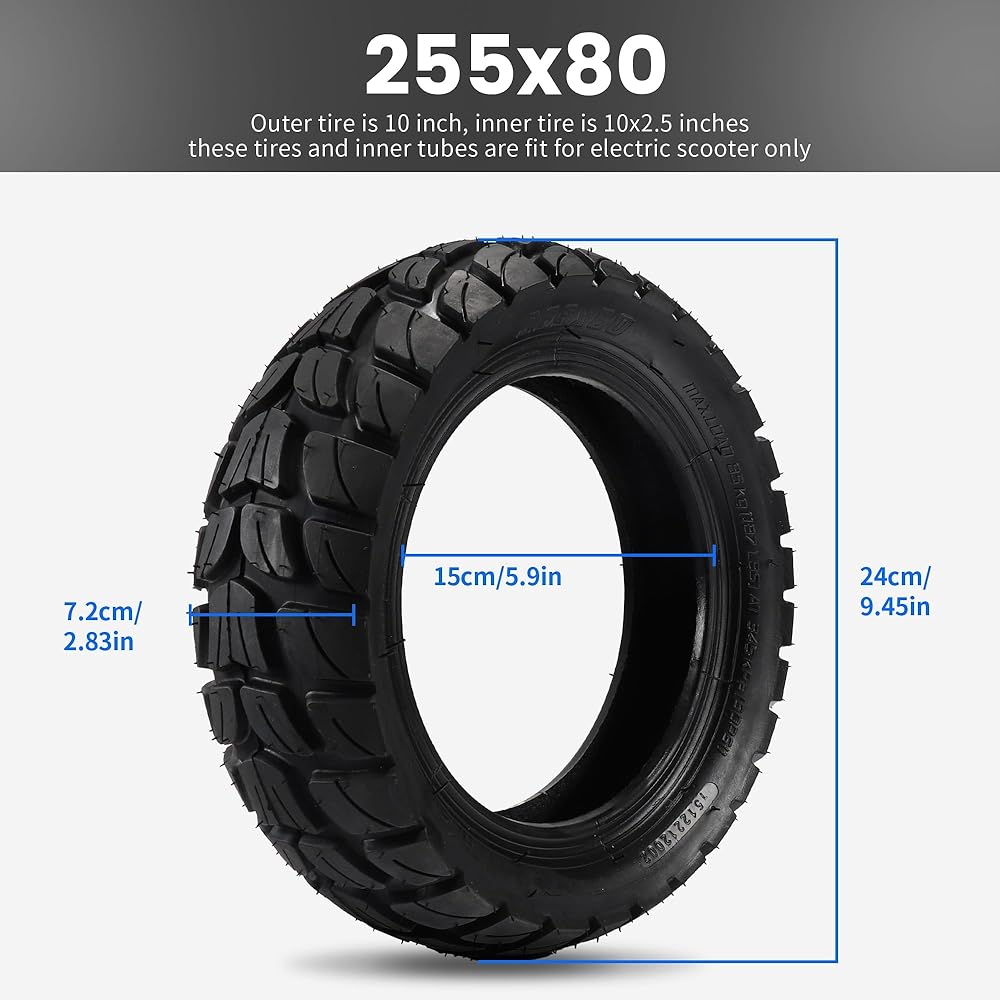 أنبوب داخلي لإطار سكوتر كهربائي 255x80، إطار 10 بوصة للطرق الوعرة، إطار سكوتر كهربائي 10 بوصة مع أنبوب داخلي بديل إطارات هوائية سميكة متوافقة مع سكوتر كهربائي 80/65-6 10x3.0 Pa