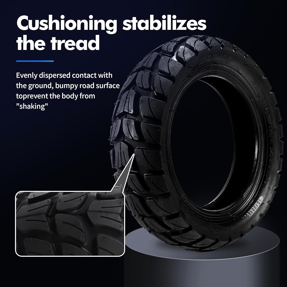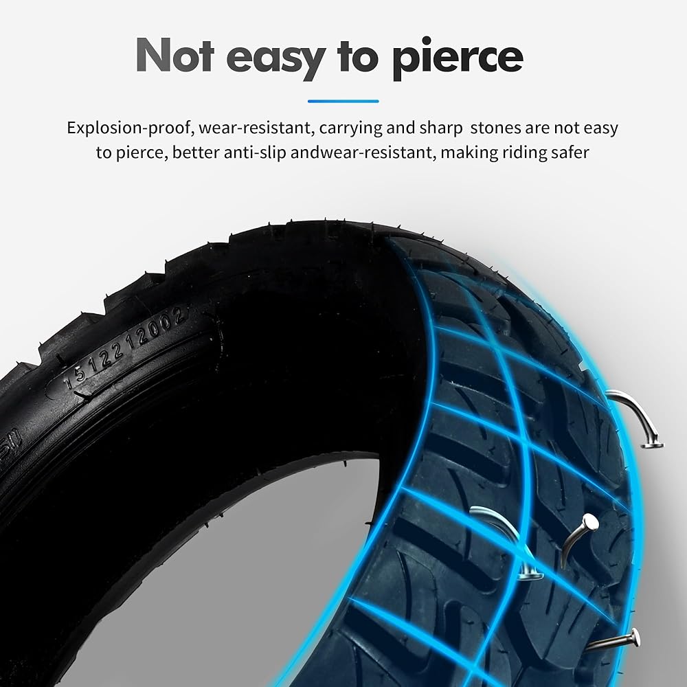 • المتانة وامتصاص الصدمات: الأنبوب الداخلي مقاس 10x2.5 مصنوع من مادة مطاط البوتيل عالية الجودة، الإطار الخاص بنا مصمم ليدوم طويلاً. فهو يوفر متانة استثنائية وامتصاصًا ممتازًا للصدمات، مما يوفر قيادة سلسة ومريحة على أي تضاريس.