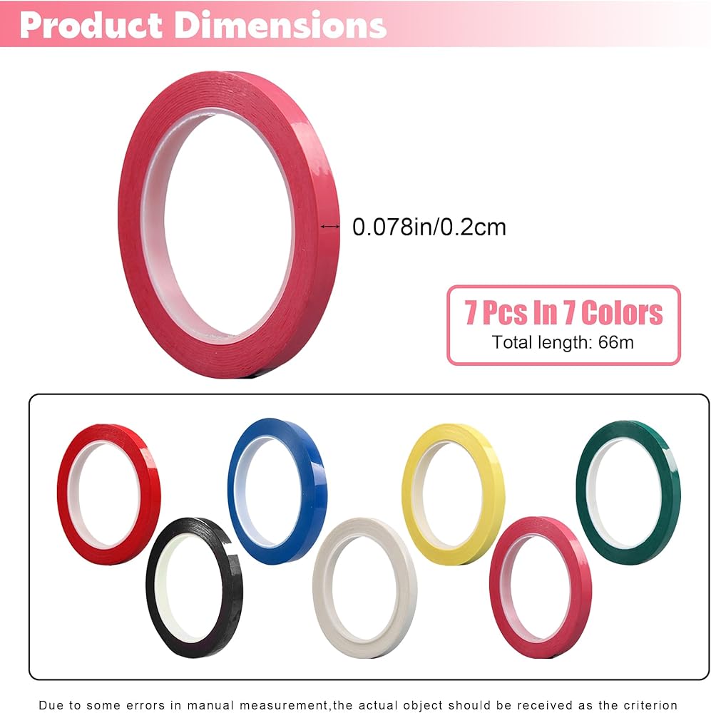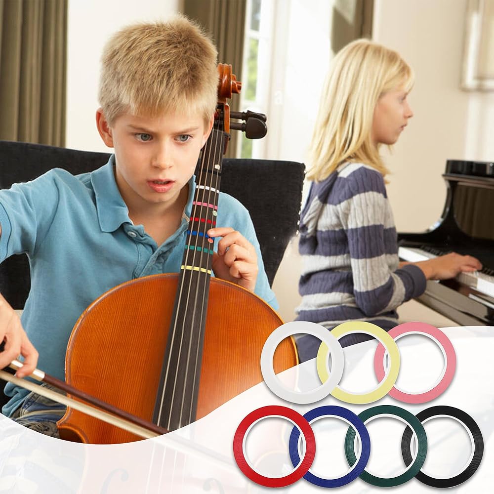 With 7 rolls of vibrant colors to choose from, including black, white, red, pink, green, blue and yellow. our Violin Finger Tapes make your string instrument practice a breeze. Each roll measures 216 ft in length and 0.12 inch in width, ensuring you have ample tape to mark your musical notes and even share with your violin-playing classmates or friends.