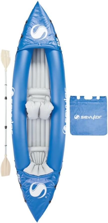 Enjoy the feel of a full-size kayak with the convenience of an inflatable boat when you're riding in a Sevylor Fiji 2-Person Kayak. The two-person kayak comes equipped with a fixed seat in the rear and a removable seat in the middle. The 22-gauge PVC construction lets this kayak stand up to multiple seasons on the water and is backed up with our Airtight System, which is guaranteed not to leak. Just in case you do hit a snag, the multiple air chambers will help you get back to shore.