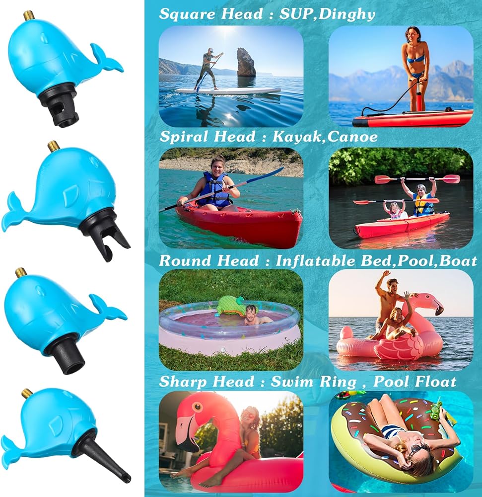 This SUP adapter for air compressor ensures smooth and quick inflating and deflating. It remarkably saves you time and energy with a 4 in 1 feature that fits most inflatable equipment. Accordingly, it's not only suitable for paddle boards but also effective on inflatable boats, air cushions, inflatable pools, and swimming rings.