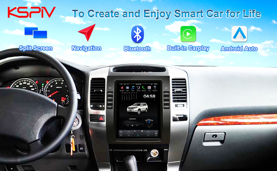 [4G+64G] ستيريو سيارة Android لسيارة Toyota Prado 2002-2009 Lexus GX460 GX470 10.4 بوصة راديو سيارة بشاشة تعمل باللمس، Apple Carplay/Android Auto/GPS Navigation/SWC/Bluetooth/كاميرا احتياطية