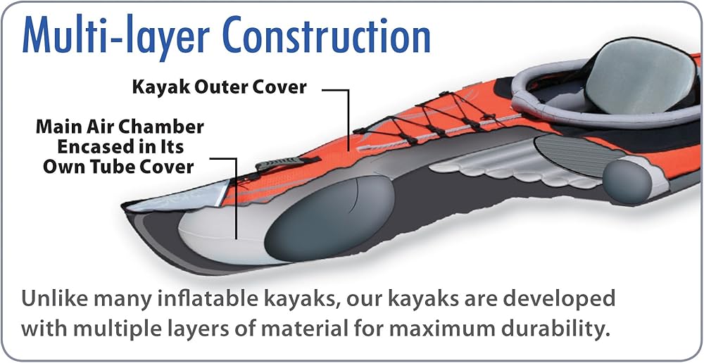 Multiple air chambers - Our unique design divides the main inflation chamber into two separate air chambers that encompass the entire kayak. This provides optimum safety when out on the water.
