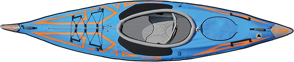 The AdvancedFrame Expedition Elite is the natural Evolution of inflatable kayaks. A hybrid of a folding frame kayak and an inflatable kayak, the expedition incorporates our proven aluminum rib-frame technology in the bow and stern, and drop-stitch technology in the floor, to provide paddling performance that rivals that of a hard-shell kayak. Working together to deliver optimal paddling performance, the aluminum ribs form a shape that cuts through the water while the drop-stitch floor provides unparalleled rigidity in an inflatable and creates hull chine. At 13' long, with plenty of storage space, the expedition Elite is the perfect kayak for any adventure! as shown in our inflatable stand up paddle boards, drop-stitch technology allows us to create high pressure forms that are extremely rigid. The drop-stitch floor in this kayak creates a hull with chine, which enhances the tracking and hull speed, and adds unparalleled rigidity in an inflatable kayak. The kayak weighs 42lbs total.