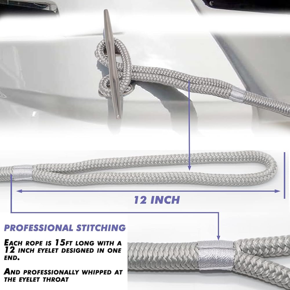 【4 خطوط إرساء】: يبلغ طول كل خط من خطوط الرصيف 15 قدمًا. يبلغ قطرها 1/2 بوصة محترمة وتأتي مع ثقب 12 بوصة في النهاية. نظرًا لأن هذه هي القياسات الأكثر طلبًا، يُباع ملحق القارب هذا في عبوات مكونة من 4 قطع وهو مضمون لحلول إرساء القارب الخاصة بك.