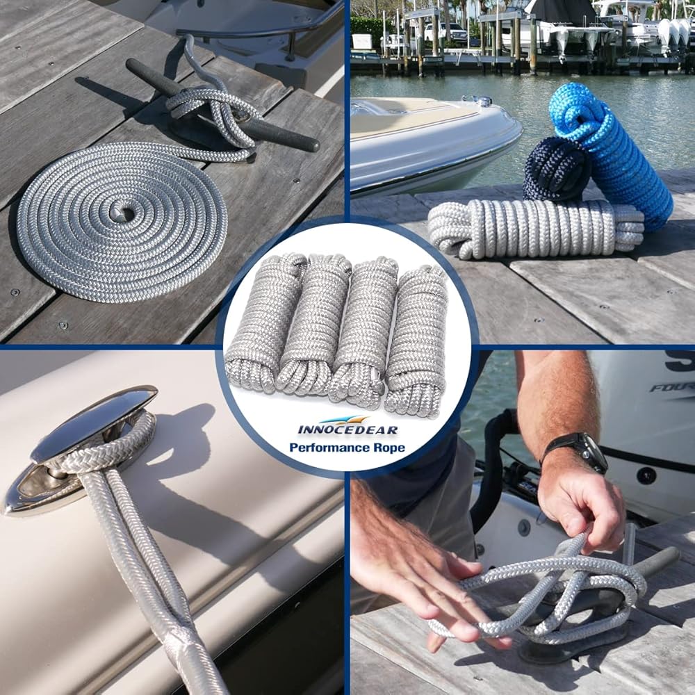 INNOCEDEAR 4 عبوات 1/2 بوصة × 15 بوصة خطوط قفص الاتهام | خط رصيف نايلون مزدوج المضفر من الدرجة البحرية مع فتحة 12 بوصة. خط رباط حبل رباط عالي الأداء (رمادي)