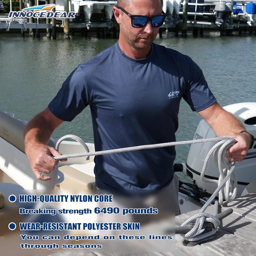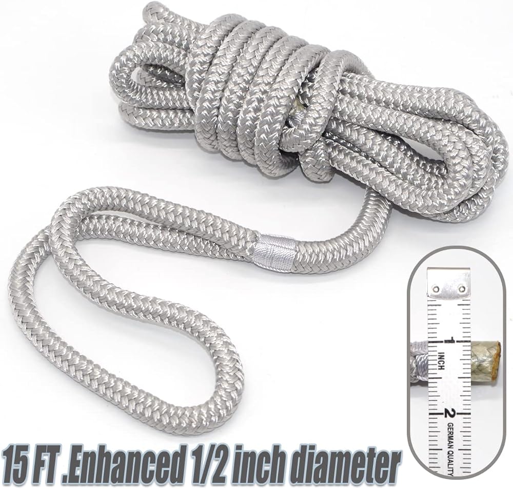 【أكثر سمكًا وأقوى】: حبل النايلون المزدوج المضفر مزدوج المضفر مما يمنحه القوة التي تحتاجها. يحتوي النايلون البحري على 24 خصلة قوية للغاية يبلغ قطرها 1.27 سم. يبلغ طولها 15 قدمًا ويوصى بها لربط القوارب الصغيرة والمتوسطة الحجم التي لا يزيد طولها عن 35 قدمًا.