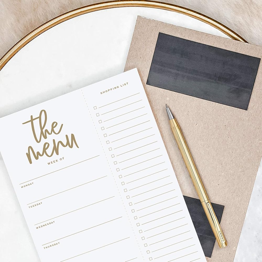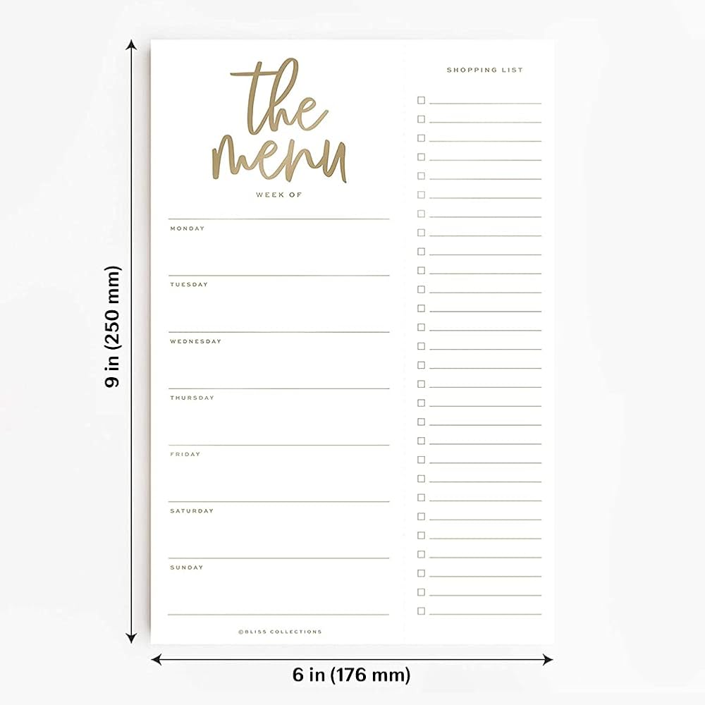 مخطط الوجبات الأسبوعي من Bliss Collections، ذهبي، تقويم وجبات عائلية مغناطيسي ومفكرة لثلاجتك لإعداد الوجبات، وقوائم البقالة، والملاحظات، والمهام، وقائمة المهام والتنظيم، 6 × 9 بوصة (50 ورقة)