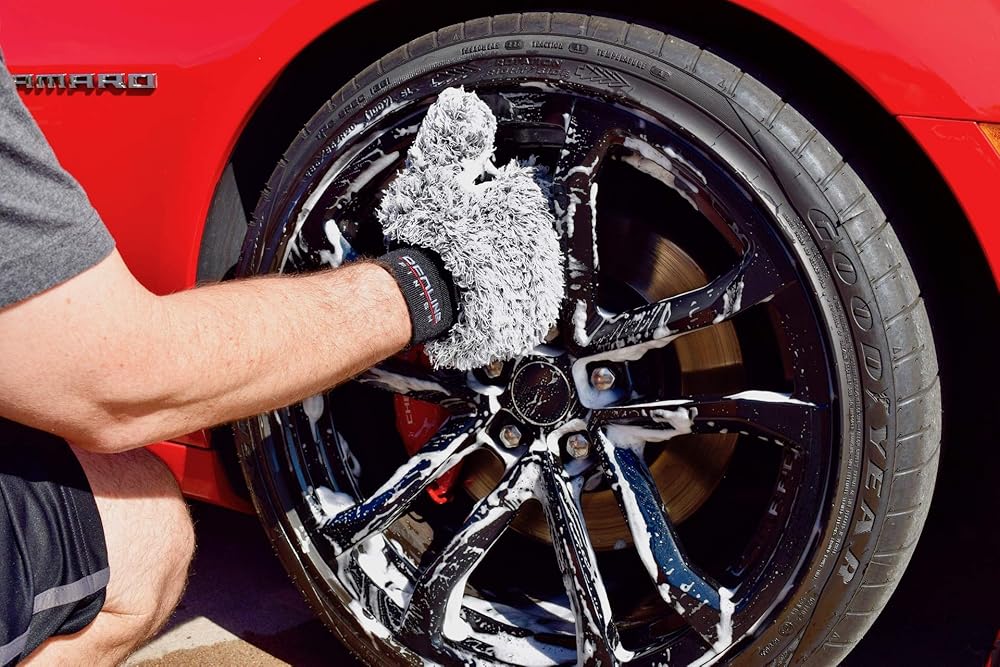 غسيل أسرع وأسهل - قفاز الغسيل الفاخر المصنوع من الألياف الدقيقة يجعل غسل العجلات أسرع وأسهل. تحتوي على مساحة سطحية أكبر للاتصال بعجلاتك مقارنة بفرشاة العجلات التقليدية