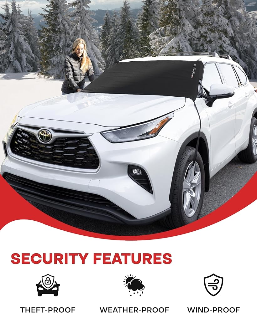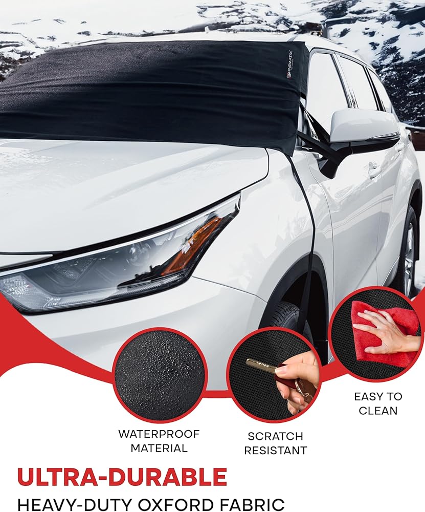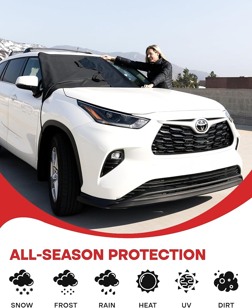 درع فائق لجميع المواسم: تم تصميم غطاء الزجاج الأمامي عالي التحمل الخاص بنا لمنع تراكم الجليد والثلج غير المرغوب فيه على الزجاج الأمامي الخاص بك، لذلك لن تحتاج بعد الآن إلى كشط الجليد، مما يوفر وقتك الثمين وتحسين رؤيتك. تعزيز رؤية القيادة الخاصة بك.