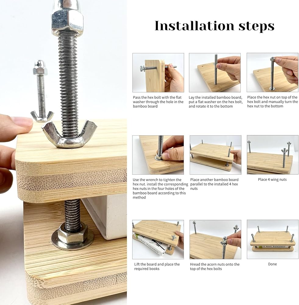 【Stable Structure】The bamboo wood of the book press has a three-layer cross structure, which ensures the stability of book binding to a certain extent and can be used for a long time.