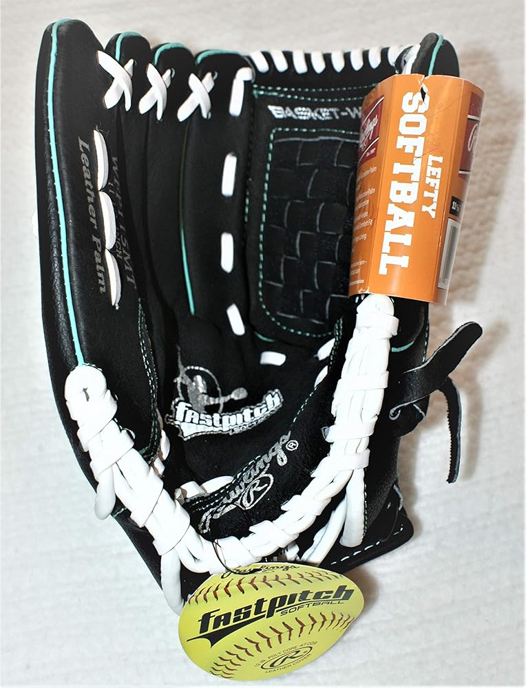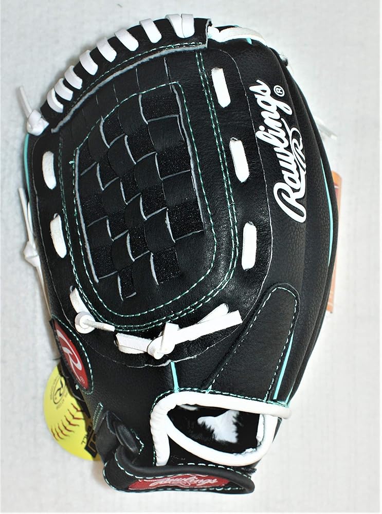 قفاز رولينغز ليفتي للكرة اللينة مقاس 11.5 بوصة، أسود/أزرق مخضر