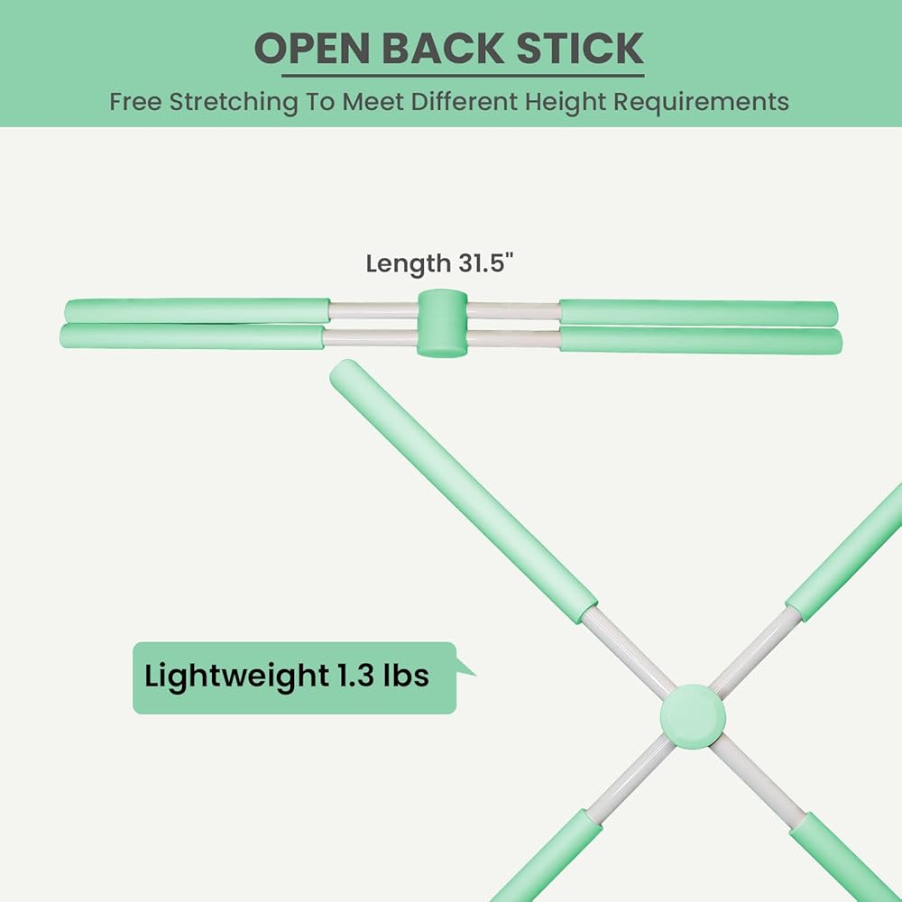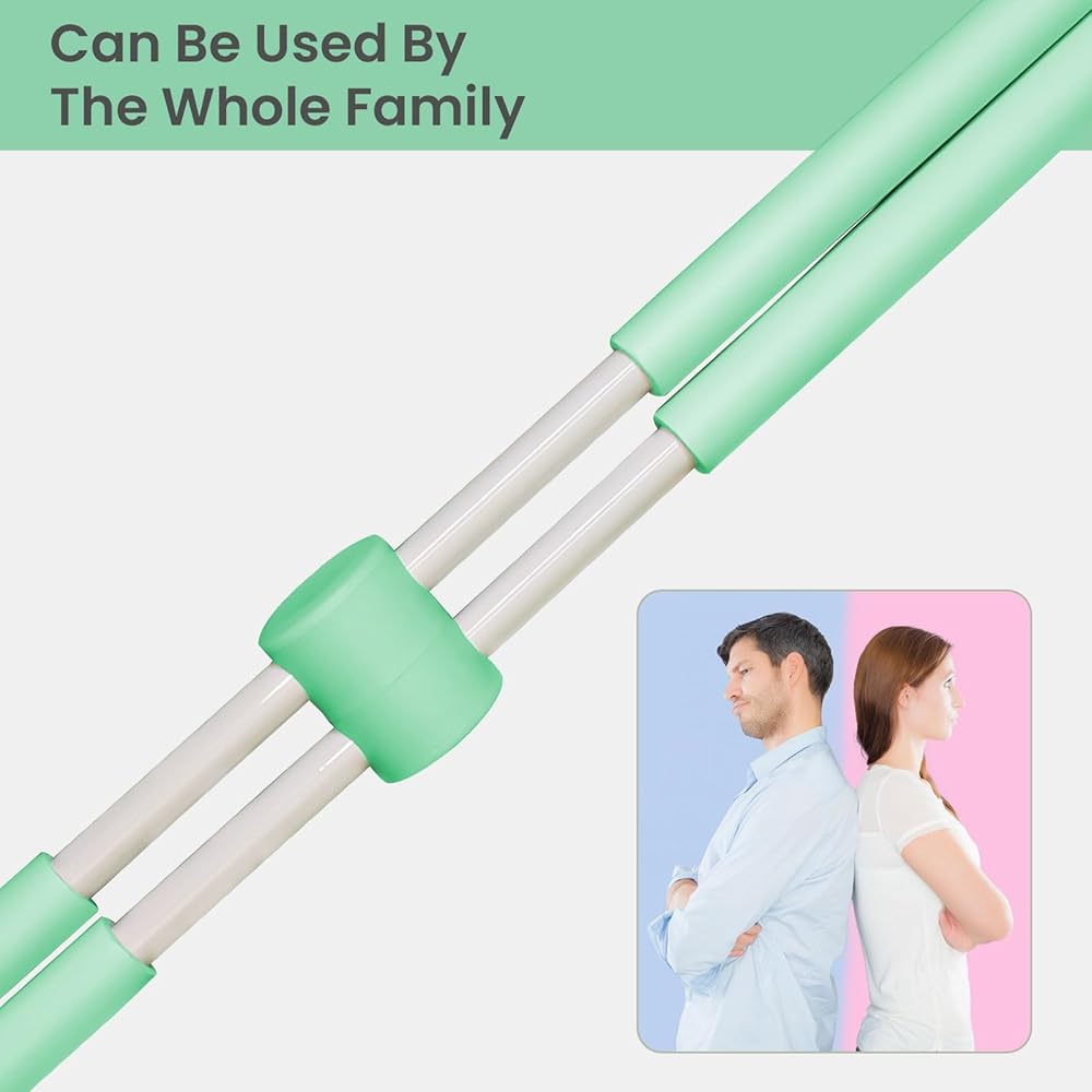 الفوائد: عصا تمدد اليوجا مناسبة للبالغين والأطفال. يمكن لجميع أفراد الأسرة استخدام مصحح الوضعية الذكي. يساعدك مصحح وضعية القضيب القابل للتمدد على فتح كتفيك، مما يجعل عظامك أكثر صحة.