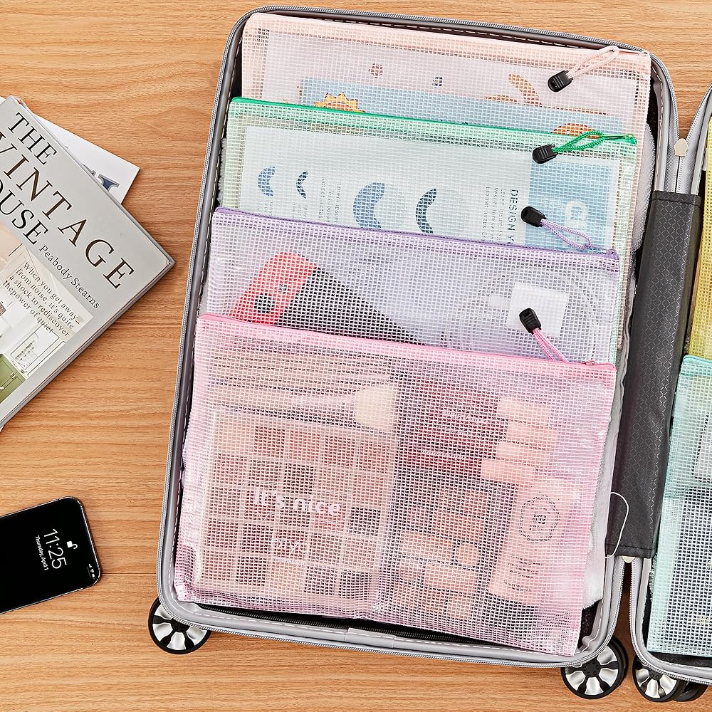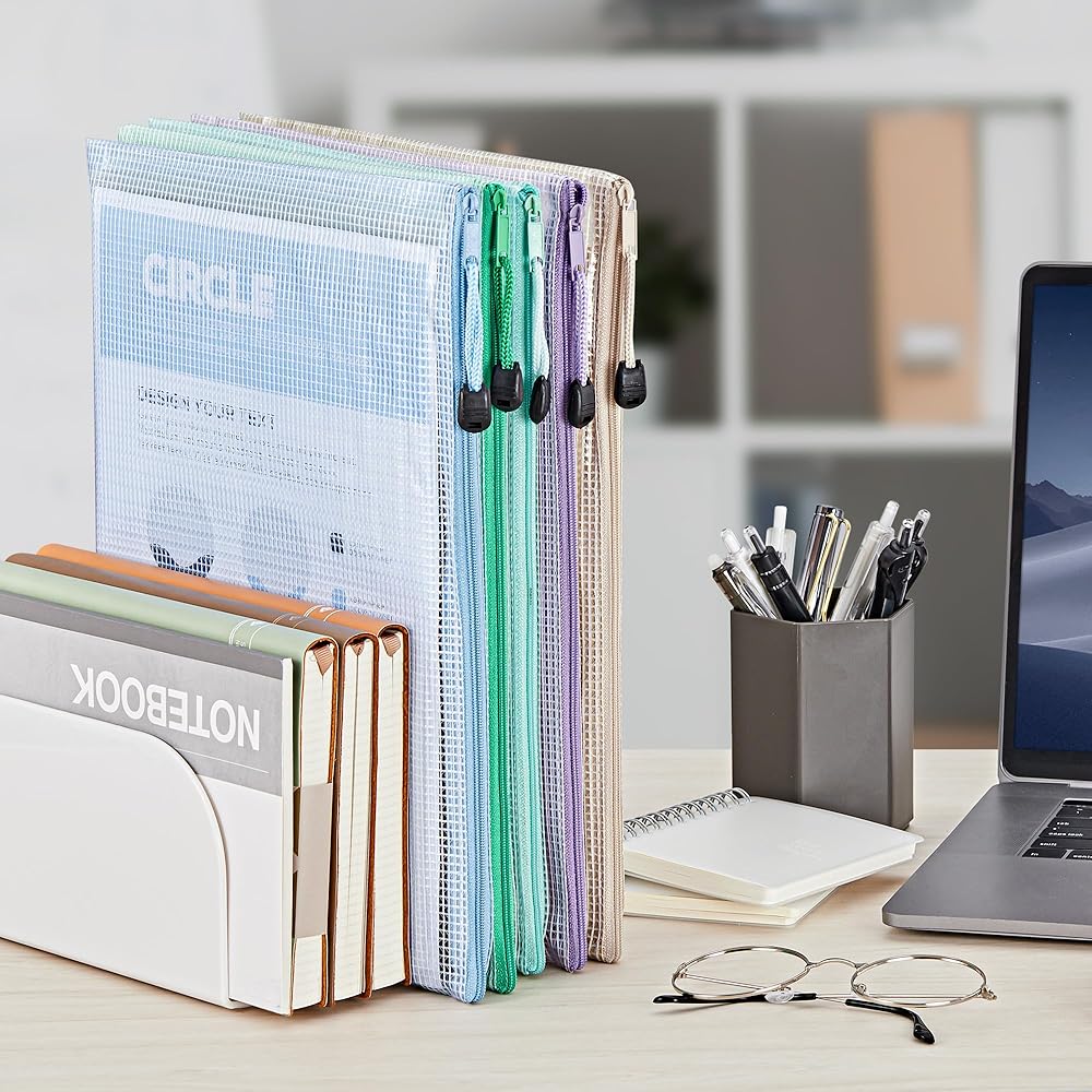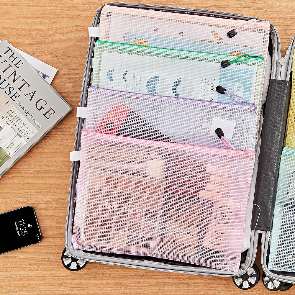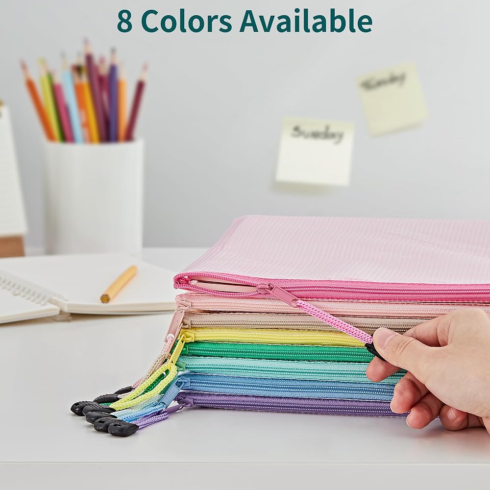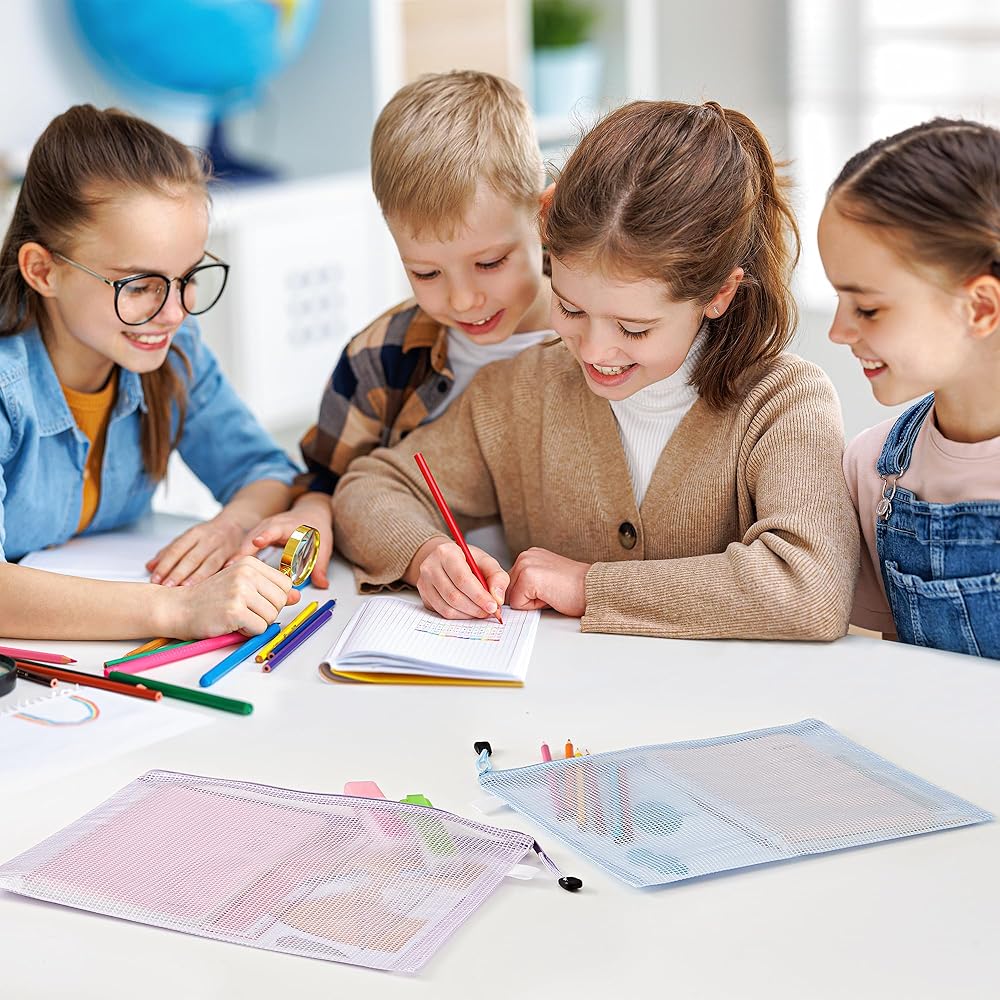 مجموعة حقائب شبكية بسحاب مكونة من 16 قطعة: تتضمن هذه المجموعة 16 قطعة من الحقائب الشبكية ذات السحاب مقاس A4/Letter (13.2 × 9.5 بوصة). تصميمها الشفاف والسحابات الملونة تجعل عملية تحديد المنتج أمرًا بسيطًا.