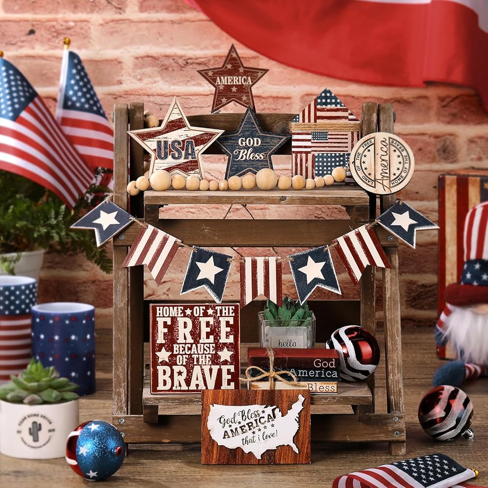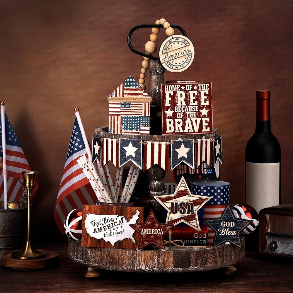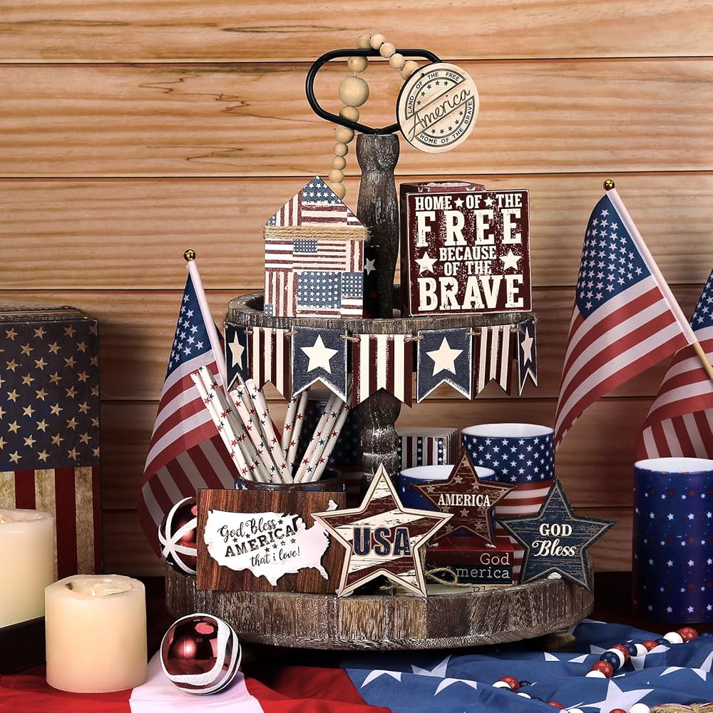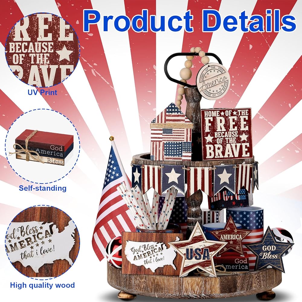The patriotic tray decor is not only July 4th gift, but also gift for Memorial Day, Veterans Day, Labor Day, Presidents' Day, Armed Forces Day, Martin Luther King Day, Washington's Birthday, and other celebration occasions.