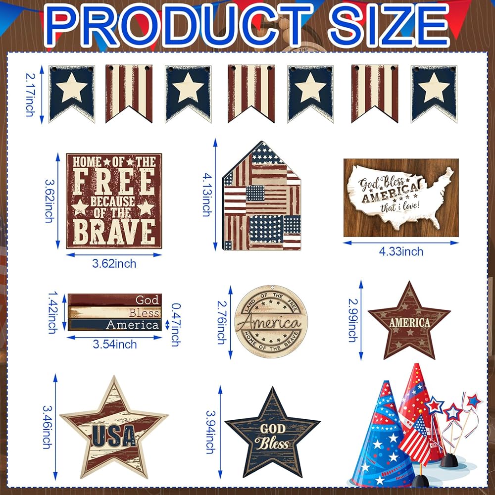 Although these wooden Independence Day decor can stand on their own or lean on tiered tray or table, you can use the brackets we offer to make them stand more firmly.