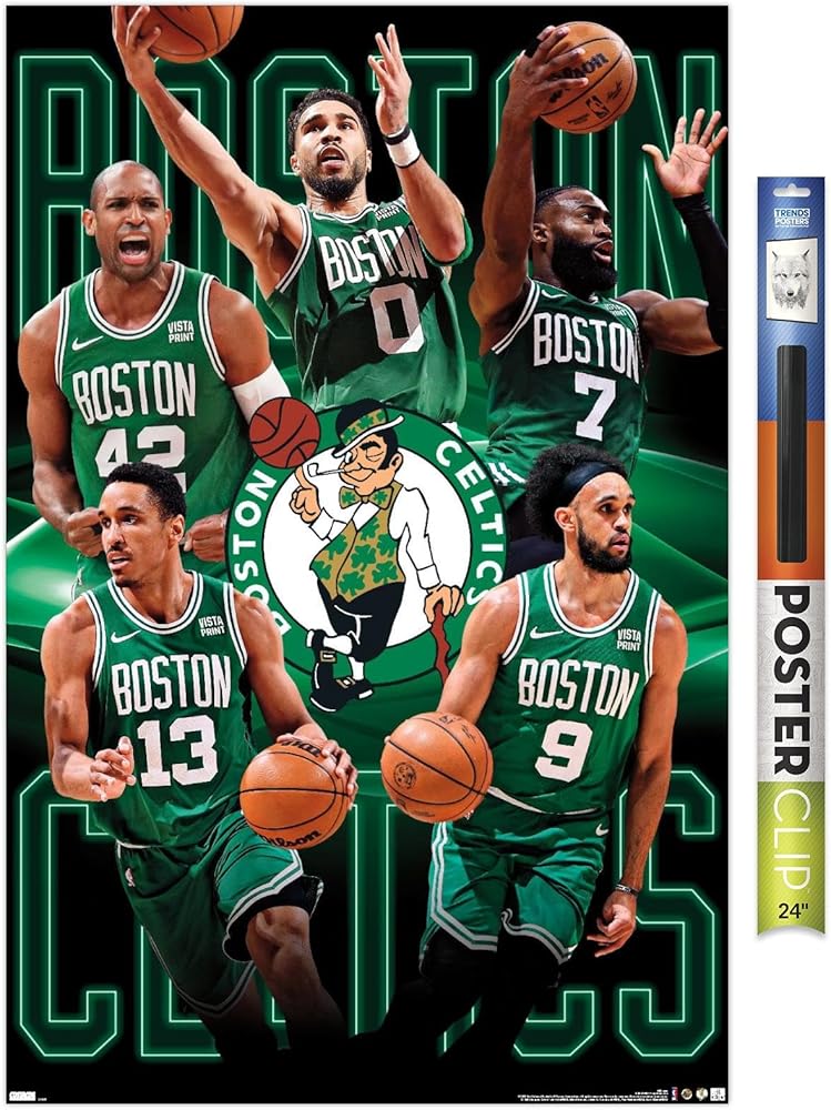Trends International wall posters are everyone's favorite room decor! This NBA Boston Celtics - Team 23 Wall Poster is created with high-resolution artwork and is printed on glossy poster paper which enhances the colors to make a bold wall decor statement in any room. Decorate the bedroom, bathroom, kid's room, living room, office, dorm, and more! Our art prints are lightweight and easy to hang using the included adhesive poster mounts that won't leave holes in your poster or damage your wall like nails, thumb tacks, or push pins. Every one of our premium posters are proudly Made in the USA. Add these decorations alongside the other accessories on your party supplies list too! Trends International's wall posters are the perfect way to dress up your parties. Poster bundles make great gifts as well! Whether it's for a birthday, Christmas, house warming or for your best friend, they'll love receiving a poster and mount bundle to show off their style.