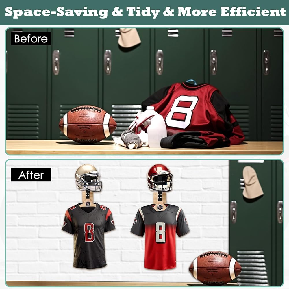 🏈 【العبوة متضمنة】تتضمن العبوة قطعة واحدة من رف الخوذة، وقطعتين من ملصقات الديكور، وقطعة واحدة من دليل التثبيت، وحزمة واحدة من أدوات التثبيت (مسامير، مفاتيح ربط، إلخ.). خدمة العملاء الودية لدينا من أجل راحة البال.