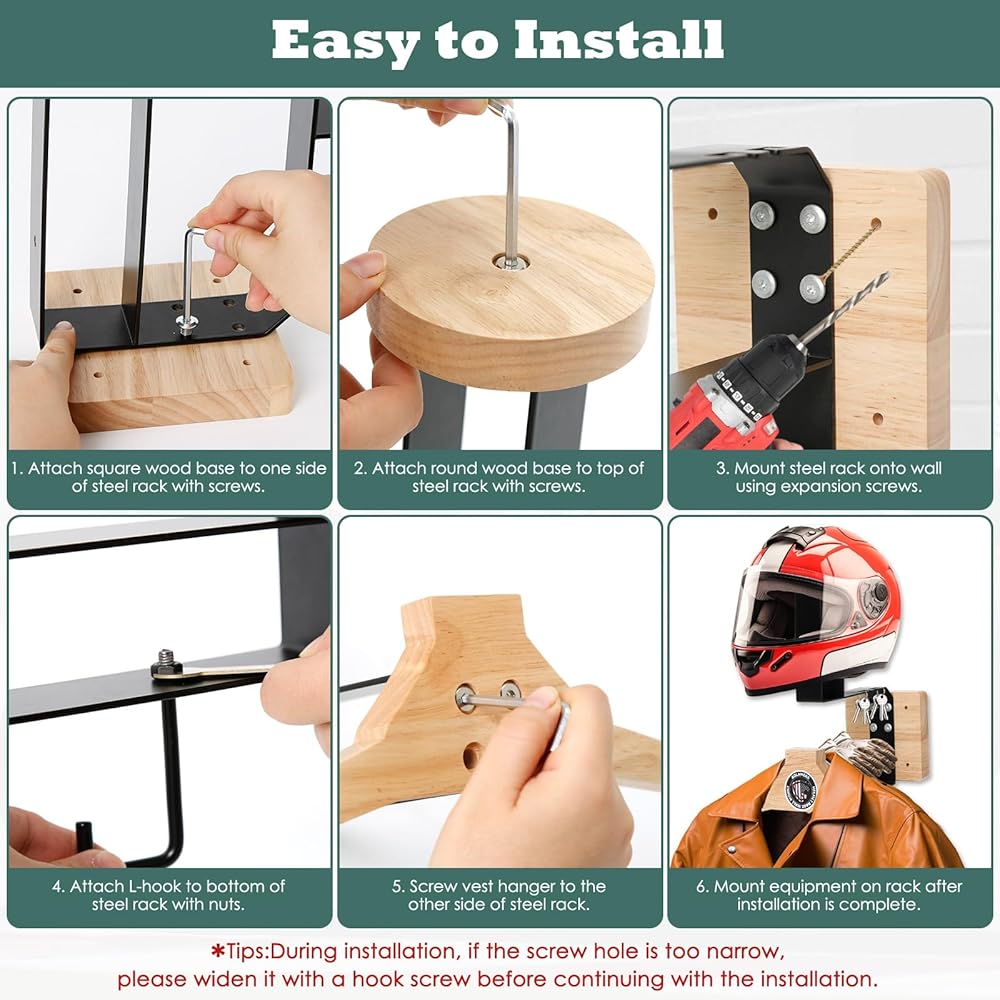 🏈[سهل التركيب] إنه سهل للغاية ولا يستغرق سوى 5 دقائق للحصول على رف يلبي احتياجات التخزين المتنوعة الخاصة بك. الخطوة 1: قم بتثبيت الرف الفولاذي على القاعدة الخشبية المربعة باستخدام البراغي. الخطوة 2: قم بتثبيت القاعدة الخشبية المستديرة في الجزء العلوي من الرف الفولاذي باستخدام البراغي. الخطوة 3: قم بتثبيت الحامل الفولاذي بالكامل على الحائط باستخدام براغي التوسيع. الخطوة 4: قم بتثبيت شماعة الملابس على الرف الفولاذي باستخدام البراغي. (يمكن الاطلاع على مزيد من التفاصيل في التعليمات)