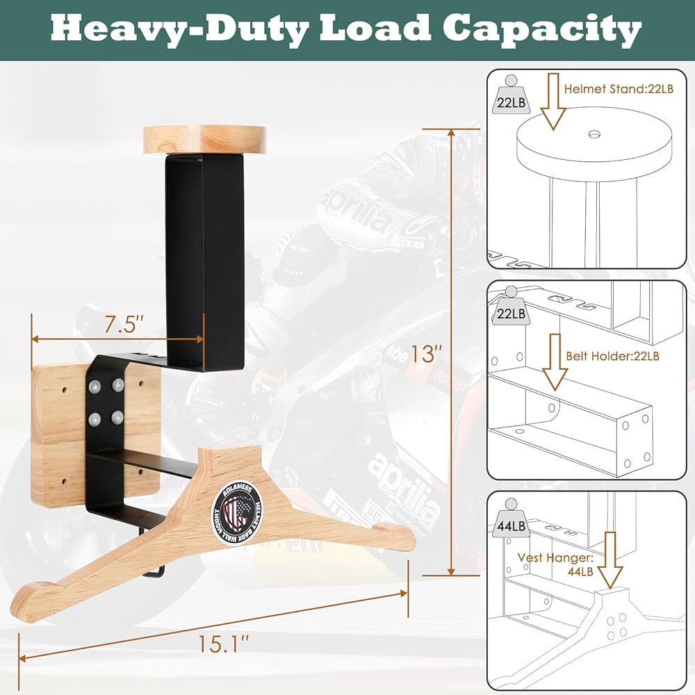 🏈【حامل خوذة متين وقوي】يستخدم رف الخوذة الخاص بنا مزيجًا من الخشب والمعدن عالي الجودة لتعزيز قدرة التحمل. لقد صُممت لتدوم طويلاً، وتتميز القاعدة الخشبية المستديرة والشماعات الخشبية بأنها ناعمة وخالية من الأشواك للحفاظ على خوذتك وسترتك من الخدش. الحامل المعدني مقاوم للصدأ وقوي بما يكفي لدعم معداتك الكاملة. سيبدو حامل الخوذة رائعًا في منزلك، أو غرفة العرض، أو غرفة المعيشة، أو الشرفة، أو الدراسة، أو أي مكان تختار وضعه!