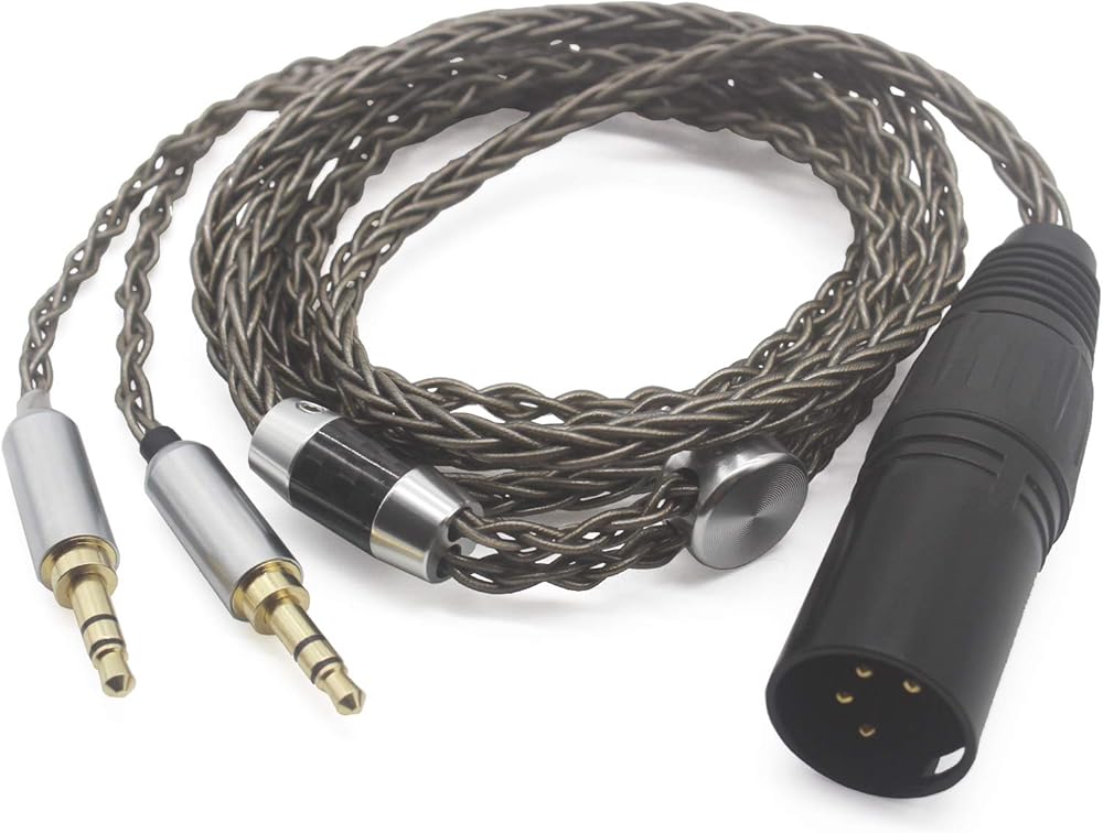 Youkamoo 4 Pin XLR Balanced Male متوافق مع Hifiman HE4XX، HE-400i Headphones 8 Core مضفر مطلي بالفضة استبدال كابل ترقية الصوت (إصدار 2 × 3.5 مم)