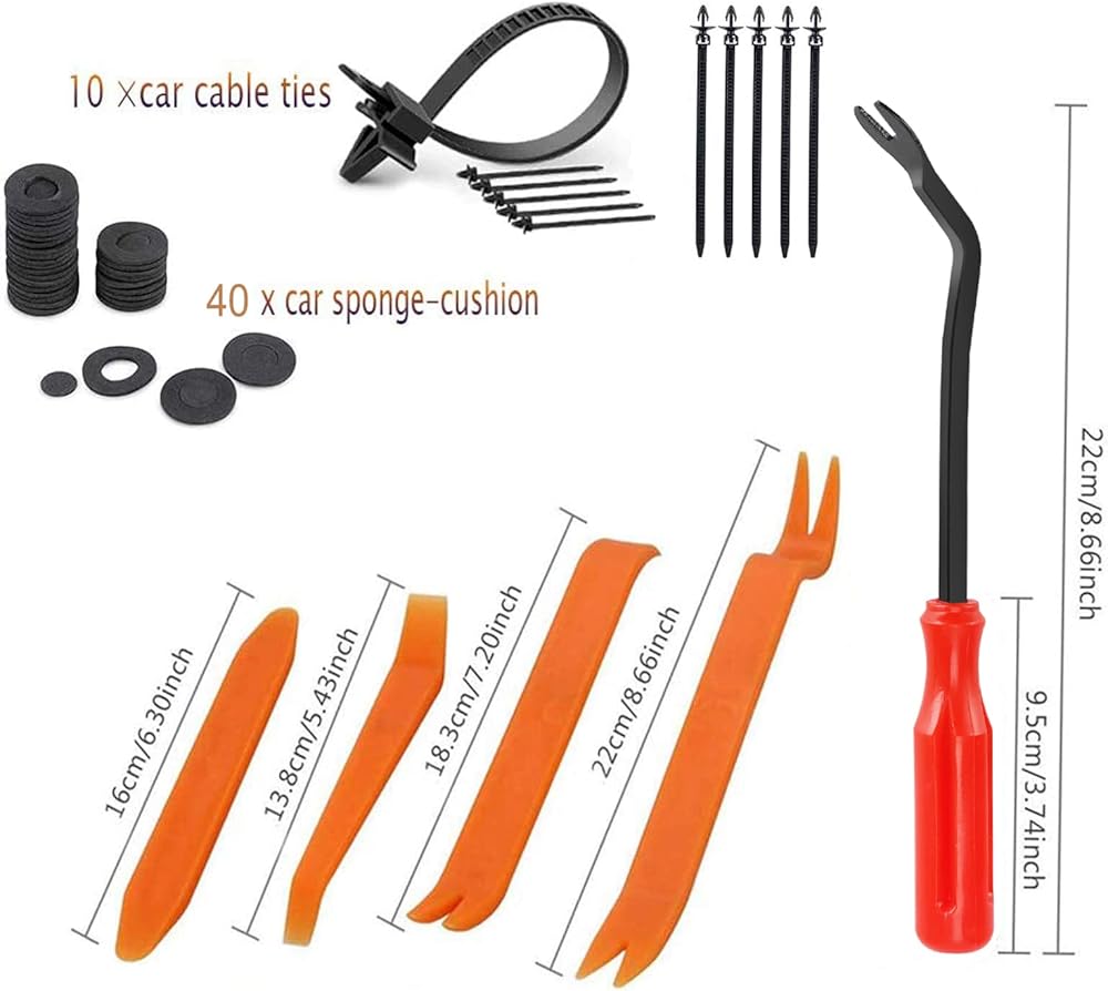 👉 ملحقات إضافية: نحن نقدم مزيلات تثبيت مختلفة الحجم وروابط الكابلات لمساعدتك على إزالة لوحة باب السيارة ومشابك التنجيد بسرعة وسهولة دون التسبب في تلفها، والوصول إلى المناطق المحدودة بسهولة. صندوق تخزين قوي يبقيها منظمة جيدًا ويحافظ على سلامتها. في صندوق الأدوات الخاص بك أو المرآب.