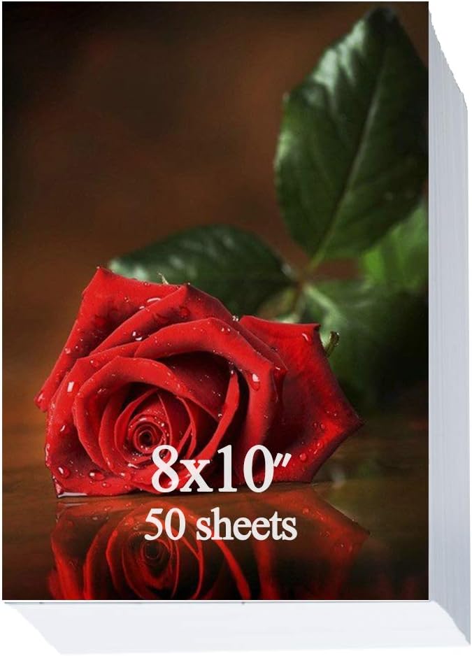 Glossy Photo Paper Size: Suitable for printing photos of any size up to 8x10 inches (including 8x10 sizes), picture sizes as 8x10 in,6x8 in, 5x7 in, 4x6 in, 3.5x5 in.