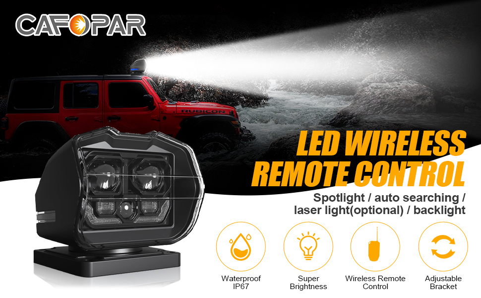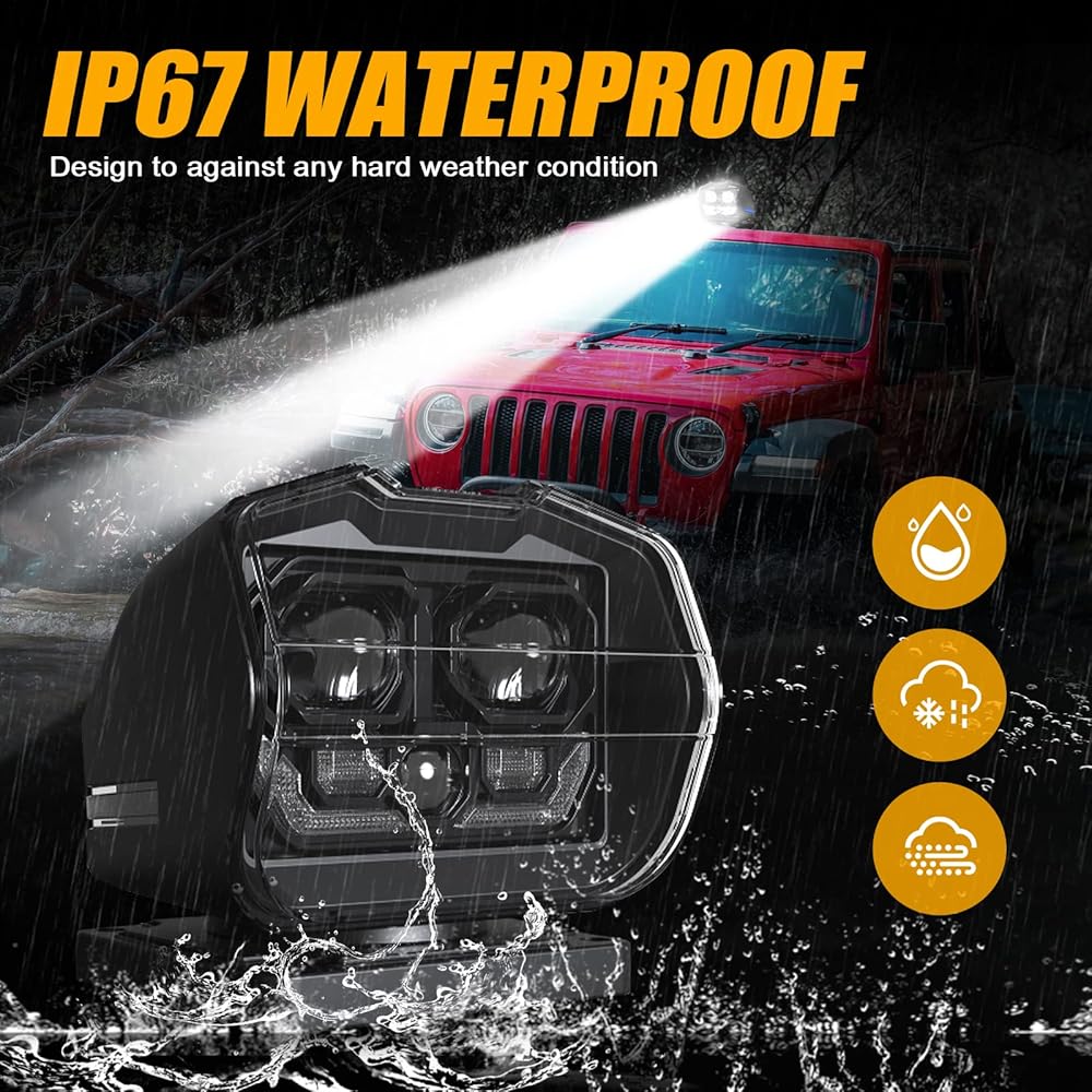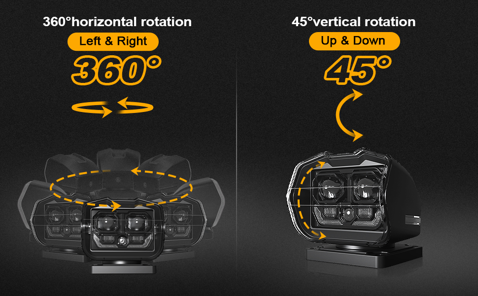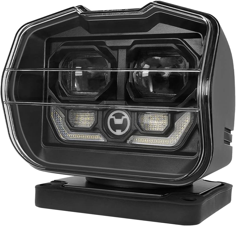 【متينة ومقاومة للماء】 مصنوعة من عدسات بولي كربونات عالية الجودة وغطاء بلاستيكي متين للضوء. مقاوم للماء IP67، لا يزال بإمكان ضوء البحث العمل في البيئات القاسية مثل الأمطار الغزيرة أو الضباب أو الثلج.