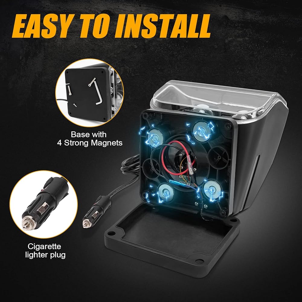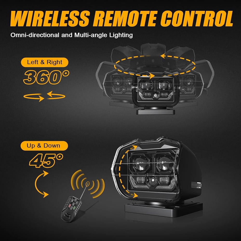 【سهلة التركيب】 مع 6 قواعد مغناطيسية قوية ومقابس ولاعة السجائر، يمكن تثبيت ضوء البحث عن بعد LED مباشرة على السيارة، مما يضيء طريقك أثناء القيادة.