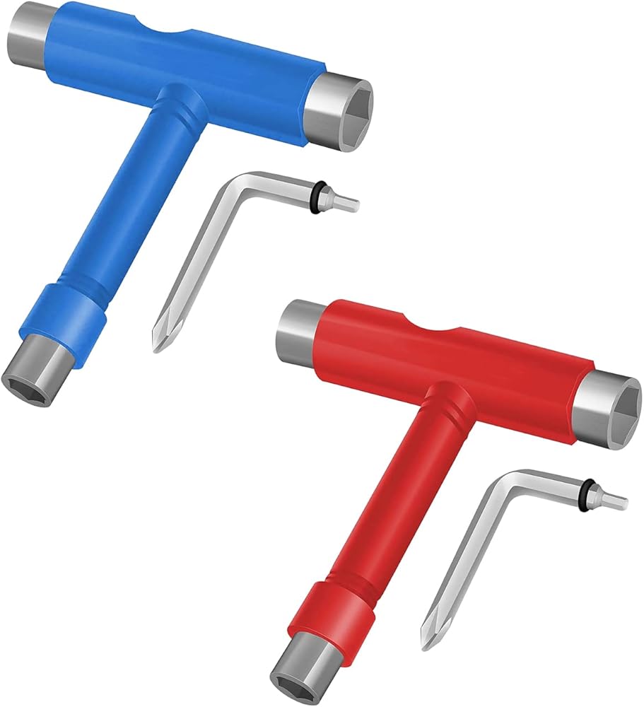 Leewoth 2pcs Skate Tool All-in-One, Multi-Function Portable Skateboard T Tools Accessory, with T-Type Allen Key and L-Type Phillips Head Wrench Screwdriver, Blue and Red
