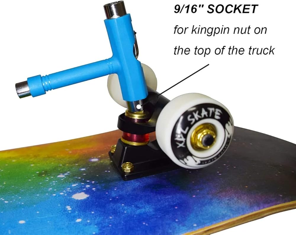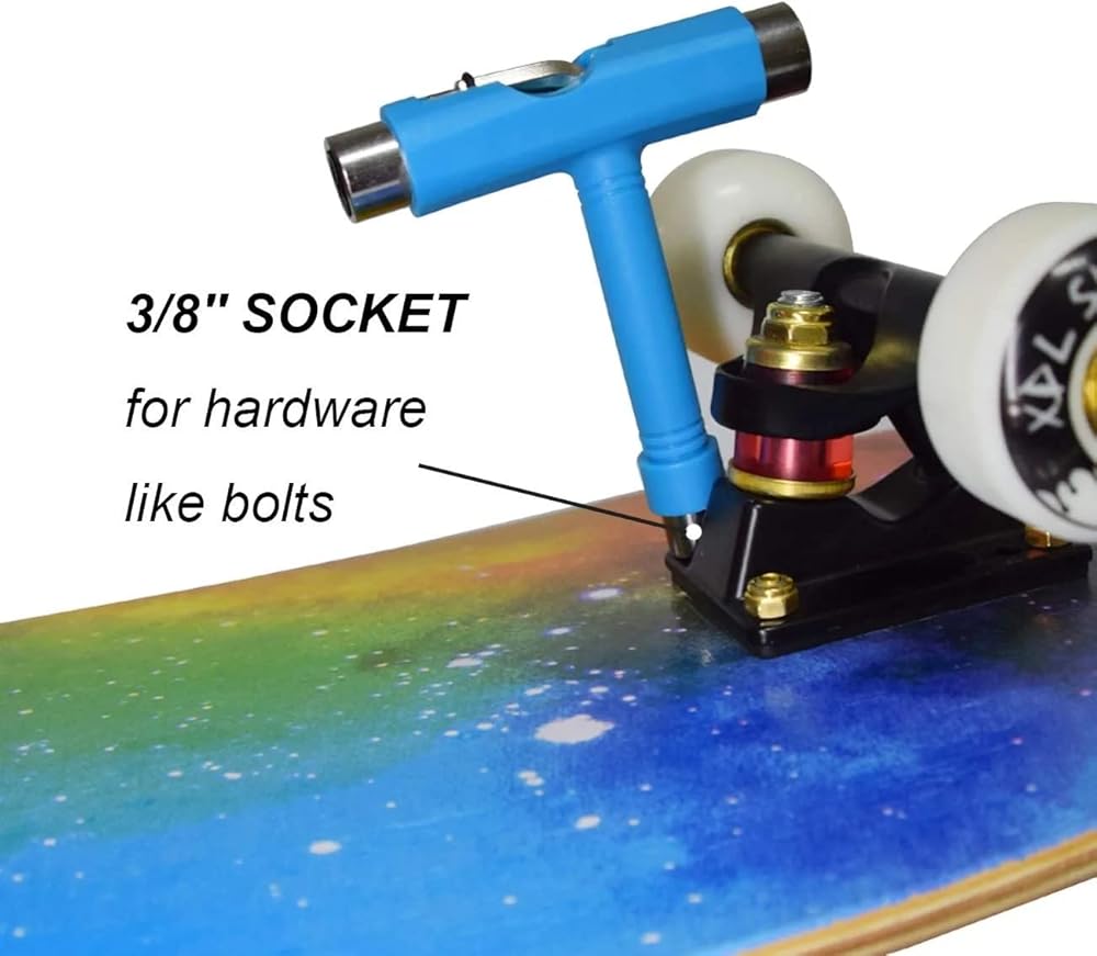 【Multi-functional Tool】The multi functional skateboard T tool that allows you to adjust axle nuts, mounting hardware, and the kingpin nut on the top of the truck to loosen or tighten your trucks for better control which is perfect for completing skateboard assembly.
