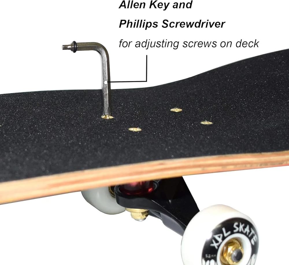 【Portable and Lightweight】The T skate tool for skateboard weighs only 4.2 ounces, The Allen key with cross screwdriver can be slide into the T skate tools handle when it's not in using, They fit most pockets that you can take them to anywhere needed skateboard adjustments.