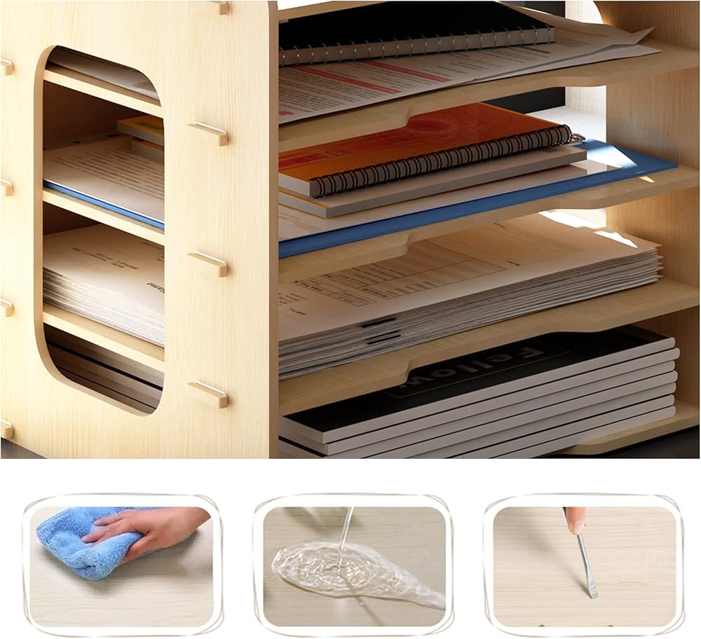 ♻[Solid Structure] :We use high-quality wooden boards with a thickness of 5mm, and are equipped with a strong fixed rubber ring, which makes the overall structure sturdy and stable, avoids the problem of dumping due to large amounts of stored documents, and has a strong bearing capacity.