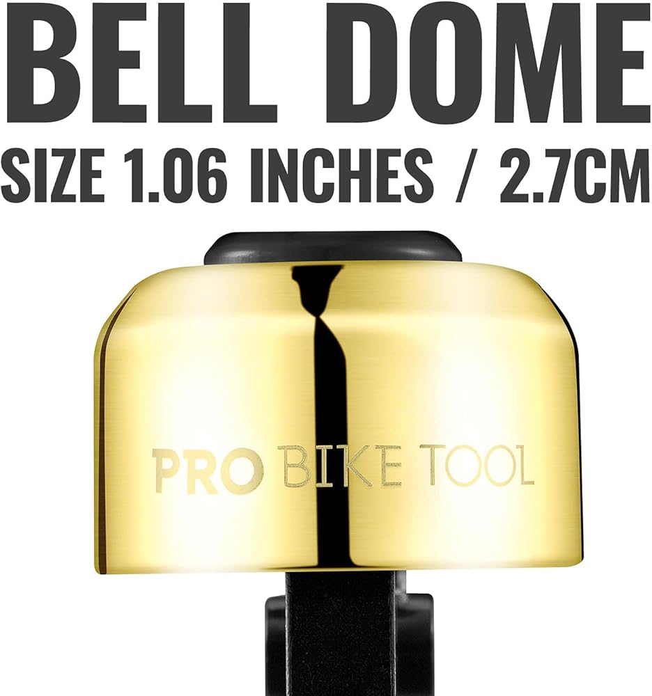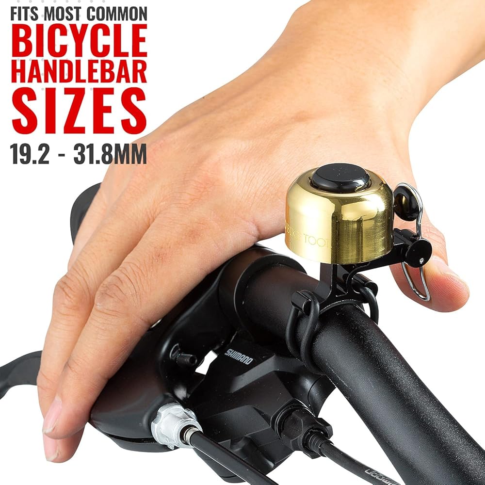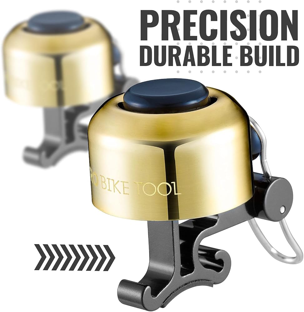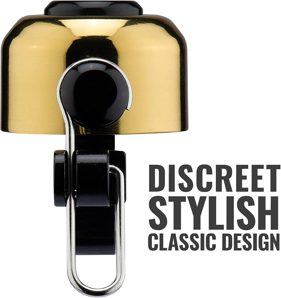 صوت نقي وواضح وطويل - قبة نحاسية عالية الجودة مع مهاجم قوي. حلقة قوية تبلغ 79 ديسيبل مع "نغمة ساطعة" لراكبي الدراجات والمشاة على حد سواء، مما يساعد الآخرين على إدراك وجودك. مقاس قبة الجرس 1.06 بوصة / 2.7 سم.