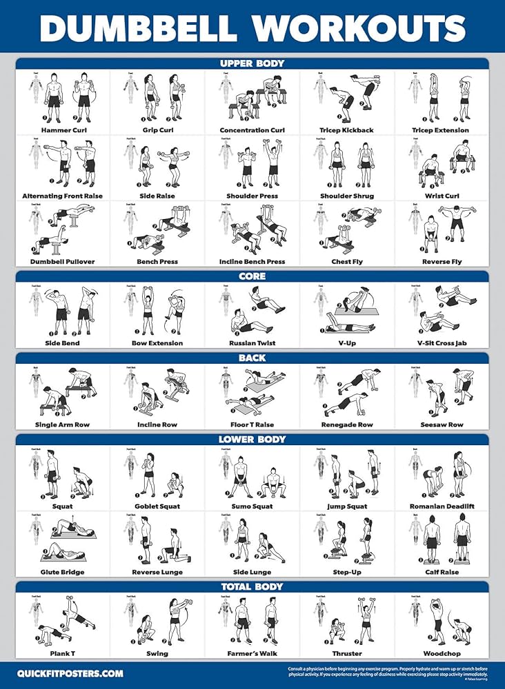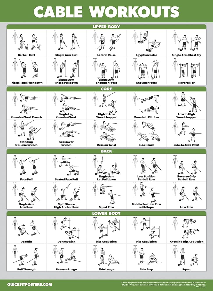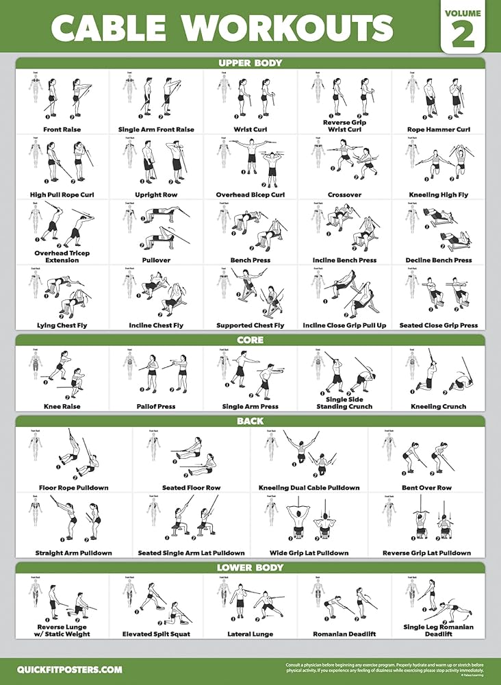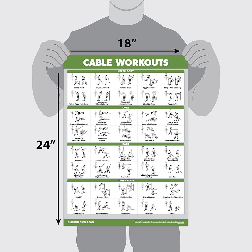 3 عبوات - ملصقات لتمارين آلة الكابلات، المجلد 1 و2 + مخطط تمرين الدمبل (مصفح، 18 بوصة × 24 بوصة)
