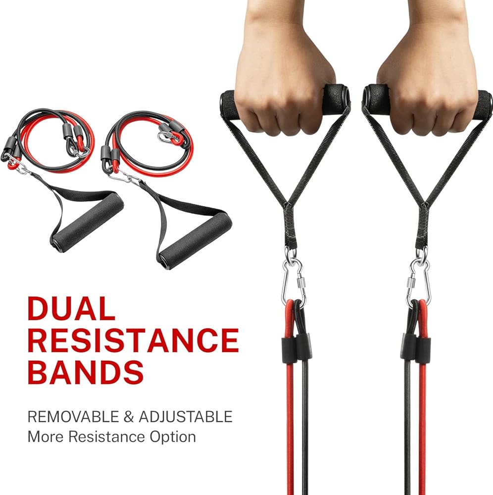 أحزمة مقاومة مزدوجة مصممة من CURSOR FITNESS قابلة للإزالة والتعديل، وتوفر المزيد من خيار المقاومة لروتين التمرين في المنزل، وتعزز تجانس صدرك وظهرك وأكتافك أثناء الانخراط في التمارين. التمارين الرياضية منخفضة التأثير.